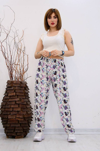 شلوار پنبه گیاهی زنانه مدل گل ریز وارداتی کد 1453