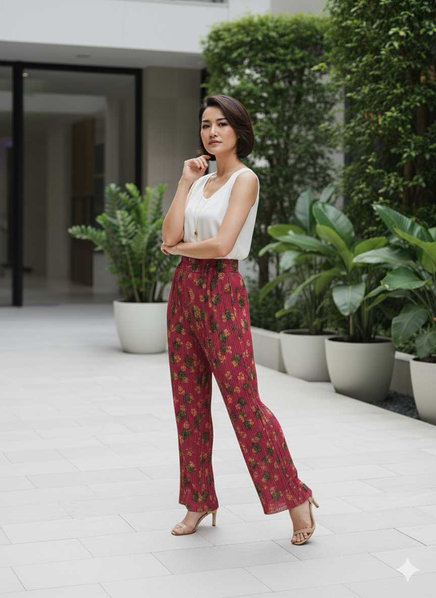 دامن شلواری زنانه مدل پلیسه وارداتی طرح گلدار کد 1455