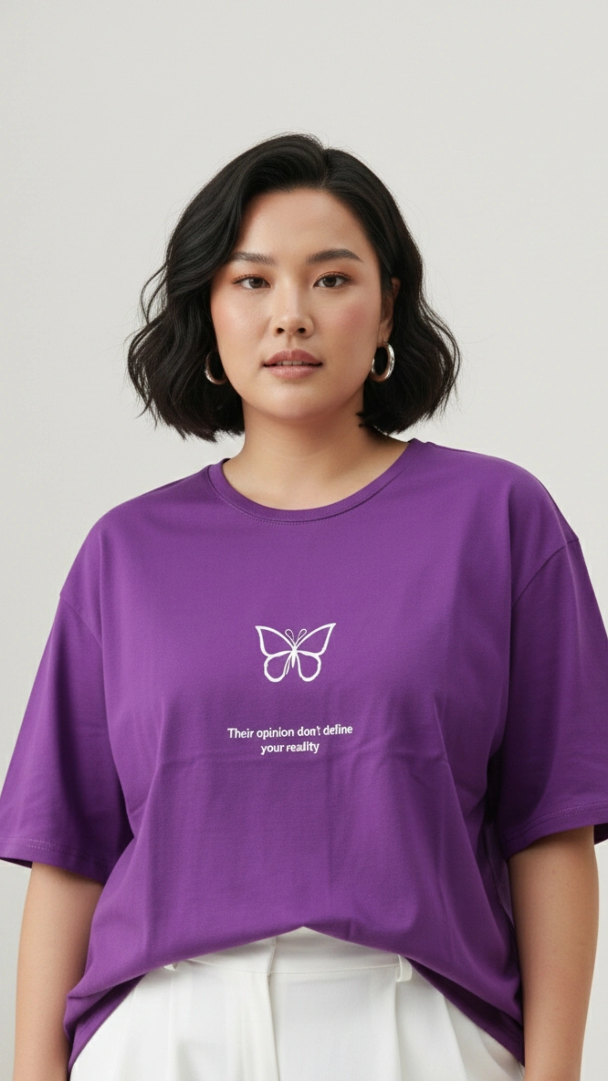 ناموجودتیشرت زنانه قواره دار باکسی چاپ پروانه کد ۱۴۹۰