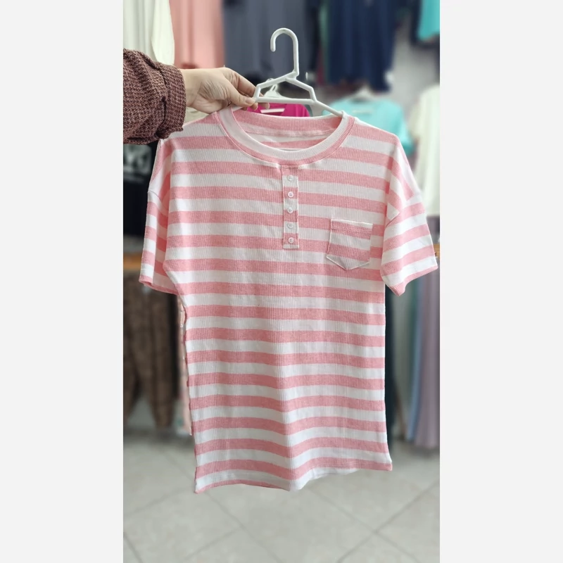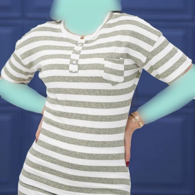 تیشرت زنانه پارچه کبریتی کشباف مدل راه راه کد 3013
