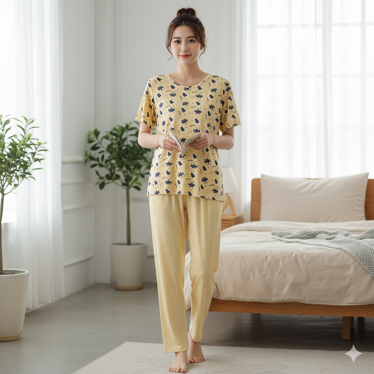 ست تیشرت شلوار زنانه پارچه سوپر پنبه لاکرادار کد 1536