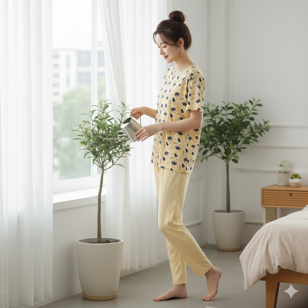 ست تیشرت شلوار زنانه پارچه سوپر پنبه لاکرادار کد 1536