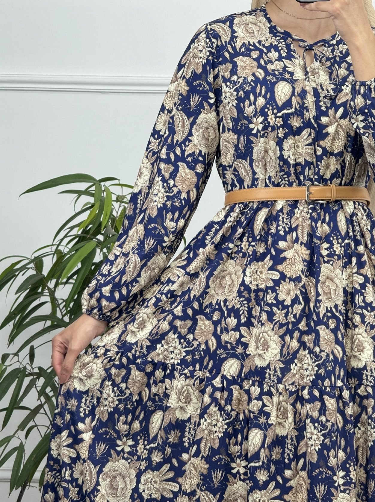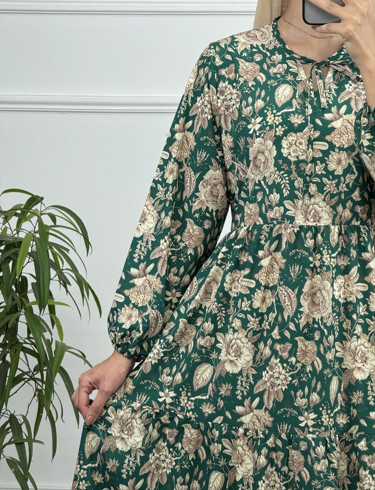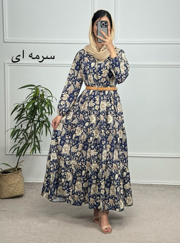 پیراهن ساحلی زنانه پارچه کرپ فلور طرح پیونی کد 3051