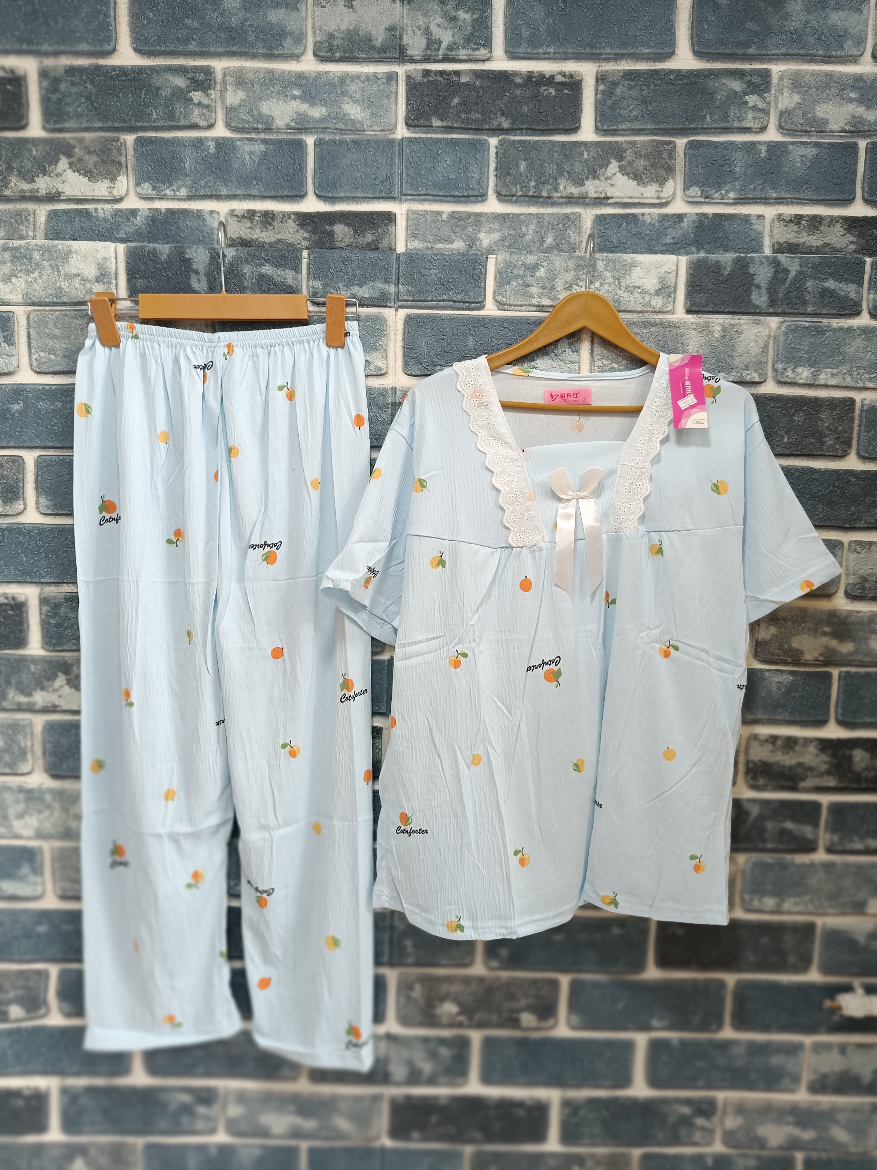 ست تیشرت شلوار زنانه پارچه نخی موسلین وارداتی کد 3020