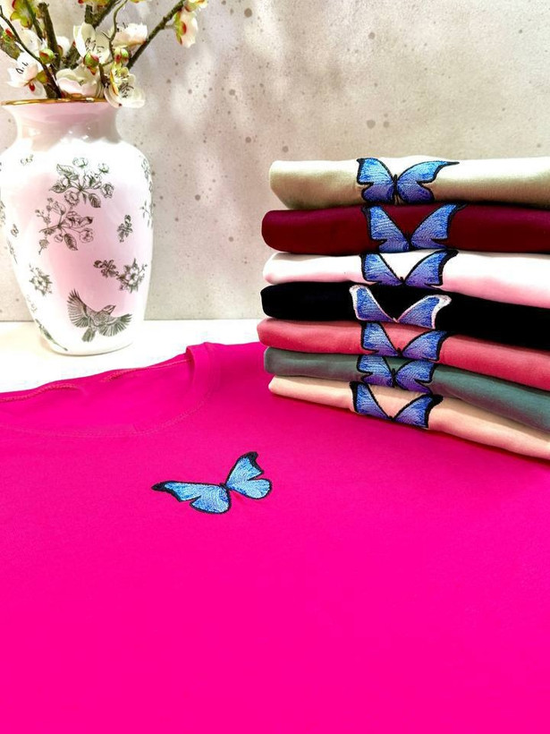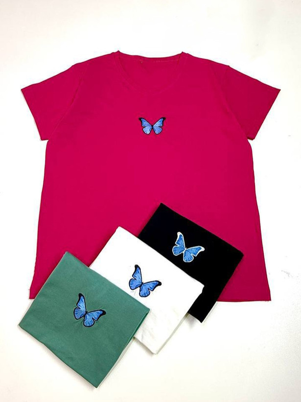 تیشرت زنانه پارچه سوپر پنبه قواره بزرگ گلدوزی پروانه کد 2096