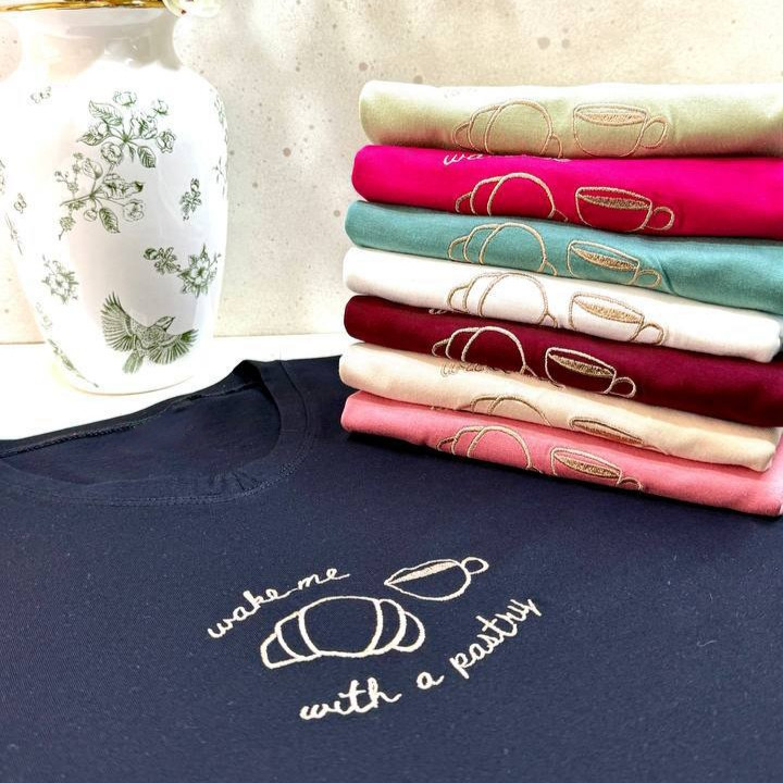 تیشرت زنانه پارچه سوپر پنبه قواره بزرگ گلدوزی کروسان کد 2096