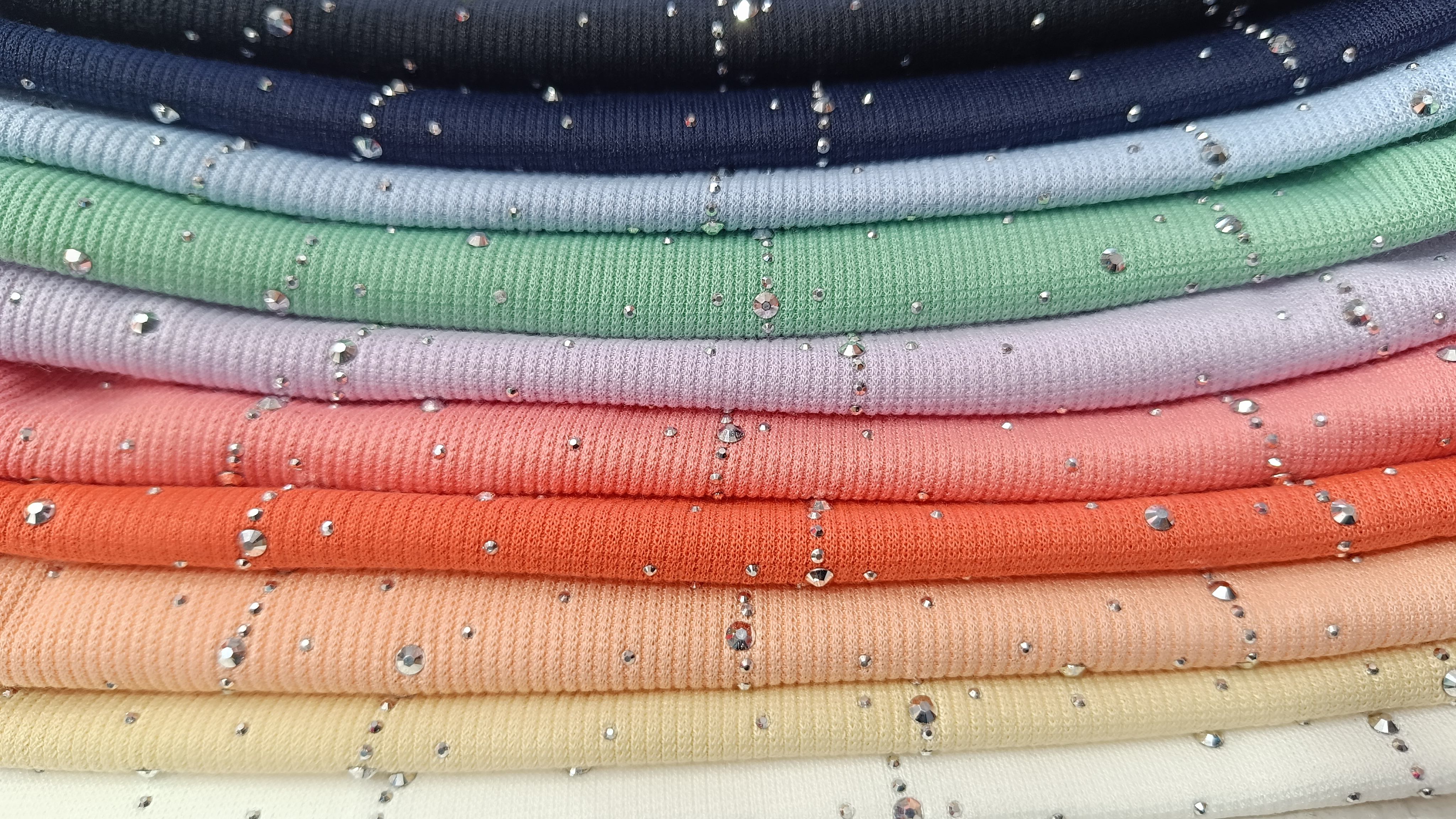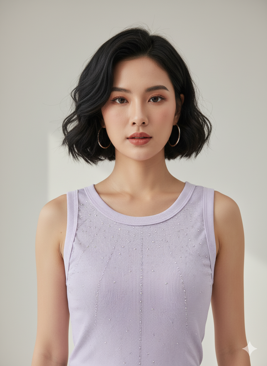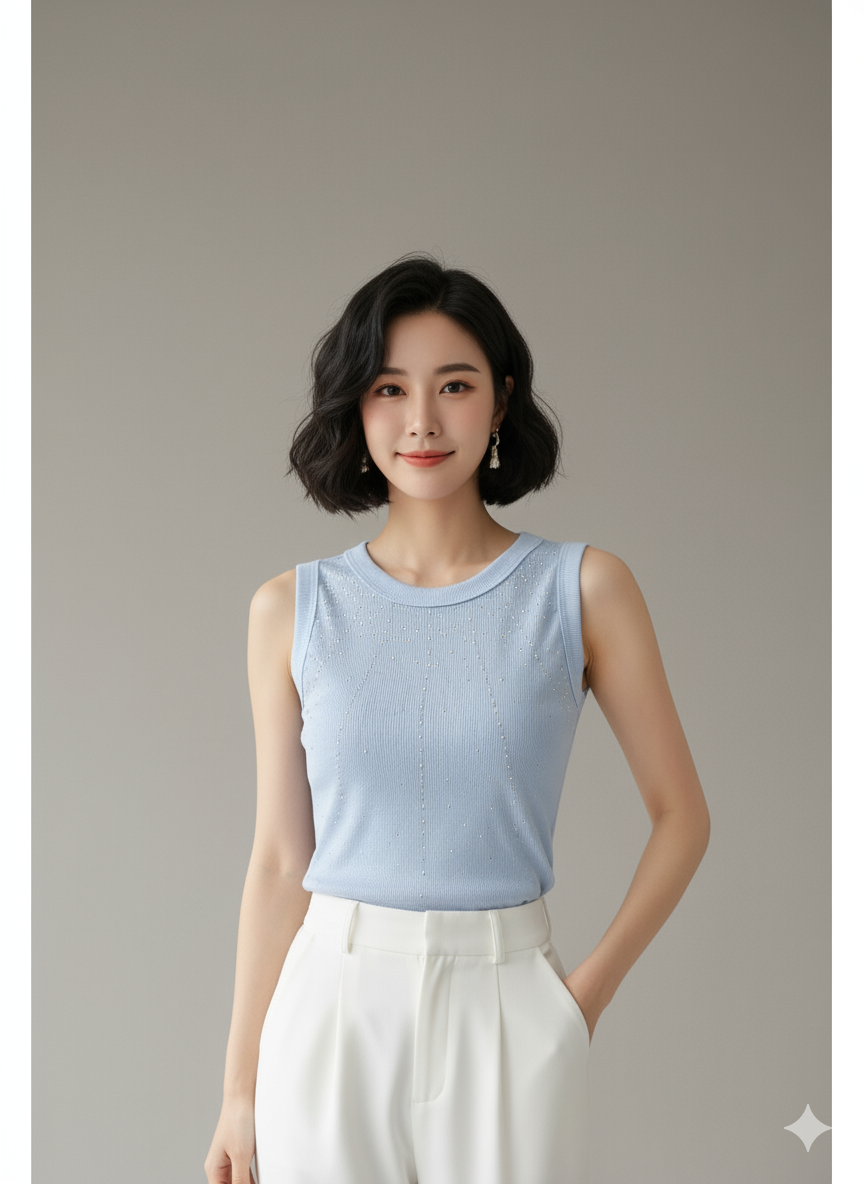 تاپ زنانه پارچه کبریتی مدل حلقه آستین نگین دار کد 3067