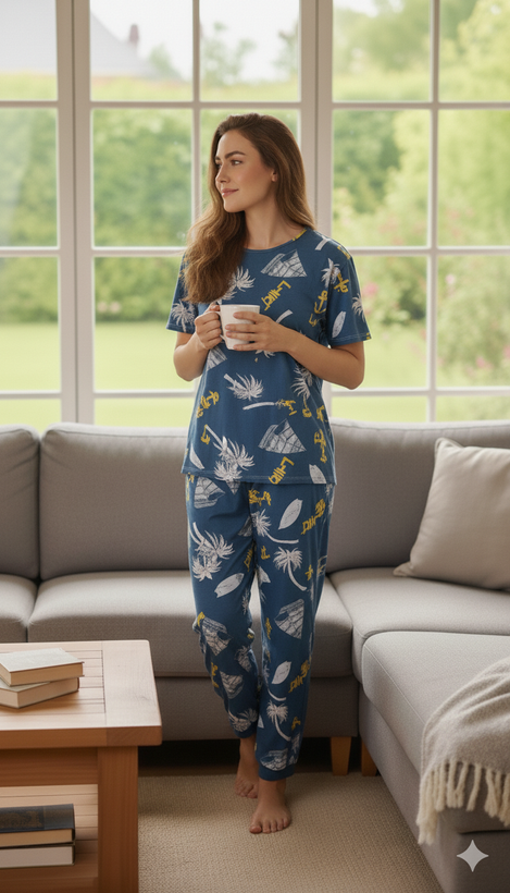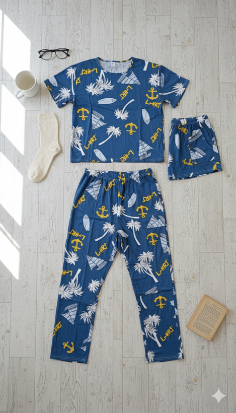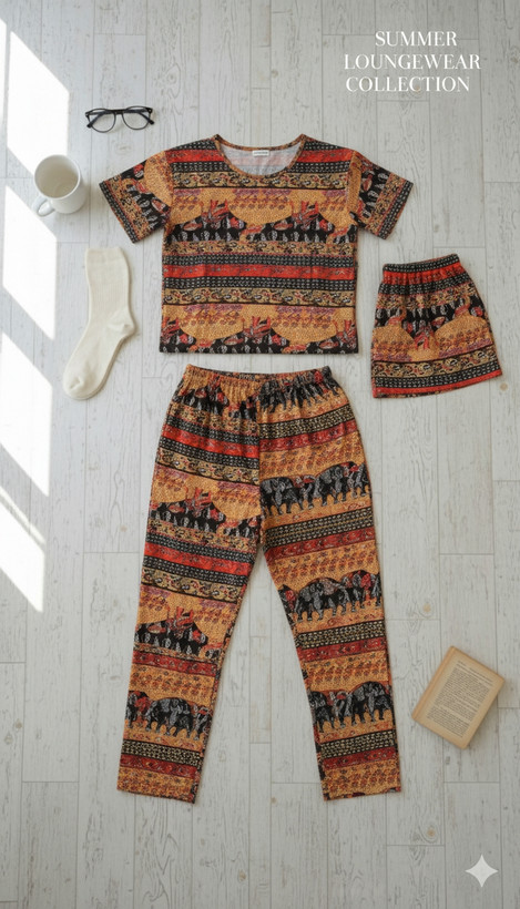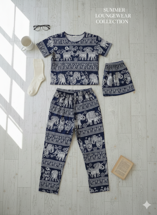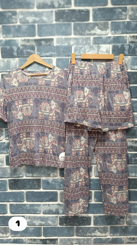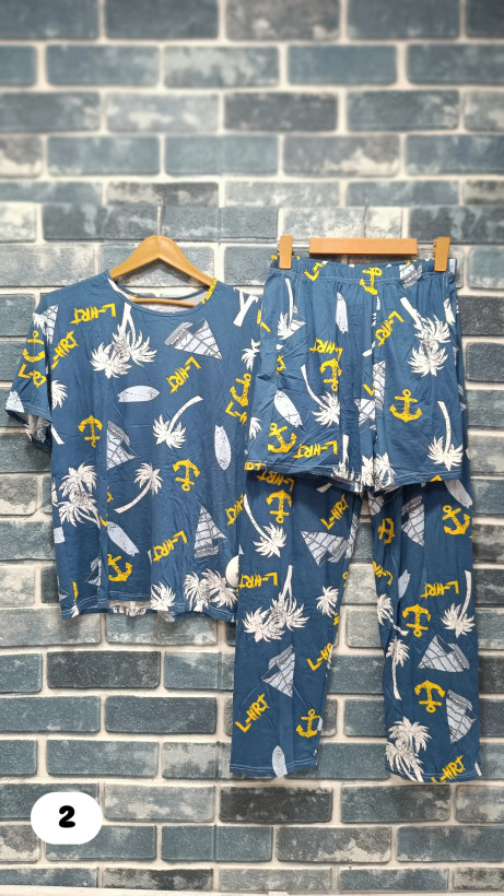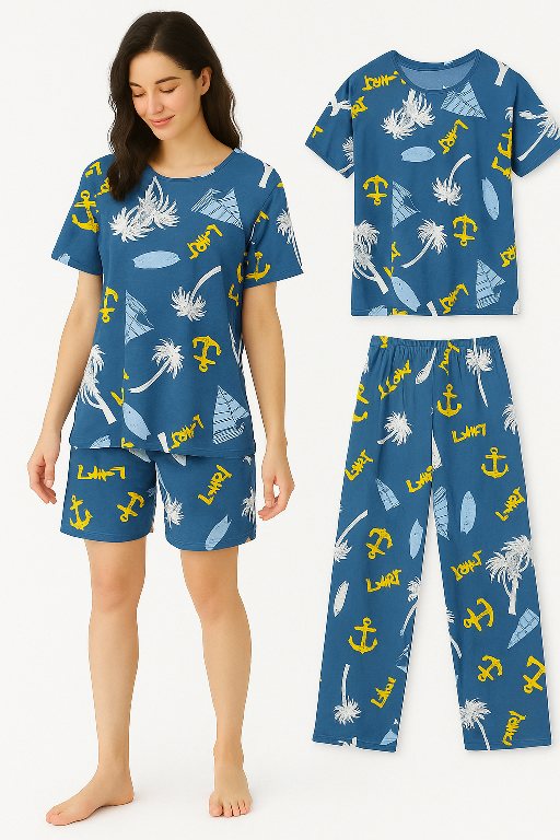 ست زنانه ، ست تیشرت شلوار و شورتک پنبه گیاهی وارداتی کد 2054