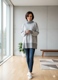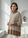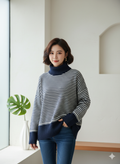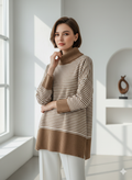 پلیور بافت زنانه مدل یقه اسکی طرح راه راه کد ۳۰۷۷
