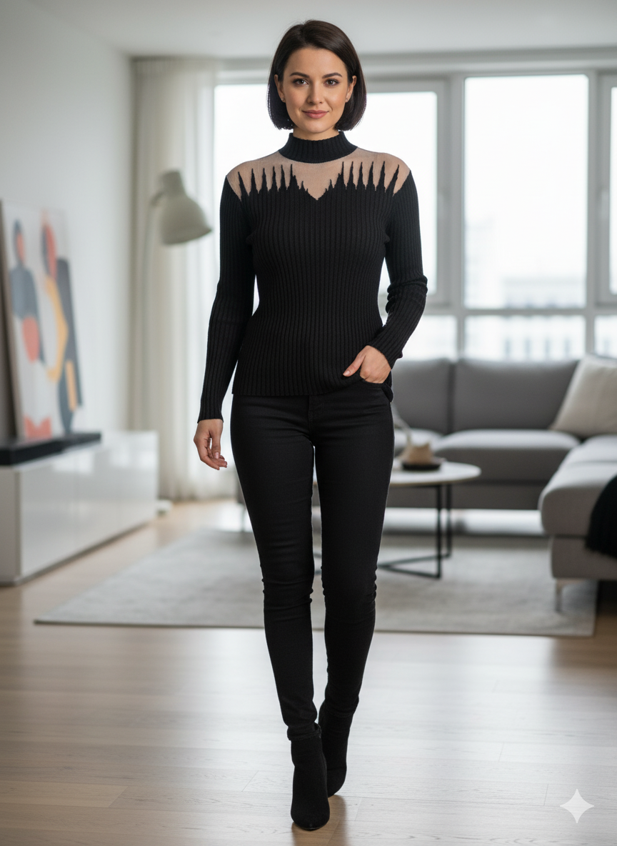 بافت گپ زنانه وارداتی یقه اسکی رنگ مشکی کد 3078