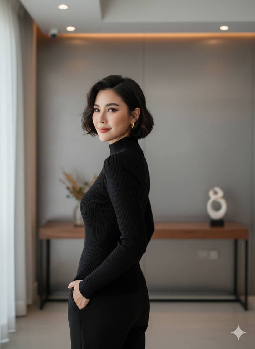 بافت گپ زنانه وارداتی یقه اسکی رنگ مشکی کد 3078