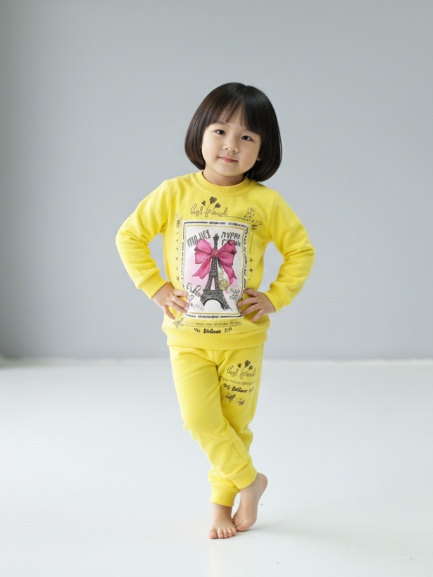 ست بلوز شلوار دخترانه مدل چراغدار وارداتی رنگ لیمویی