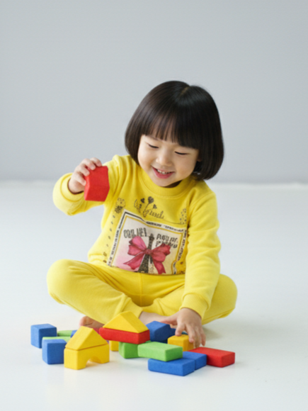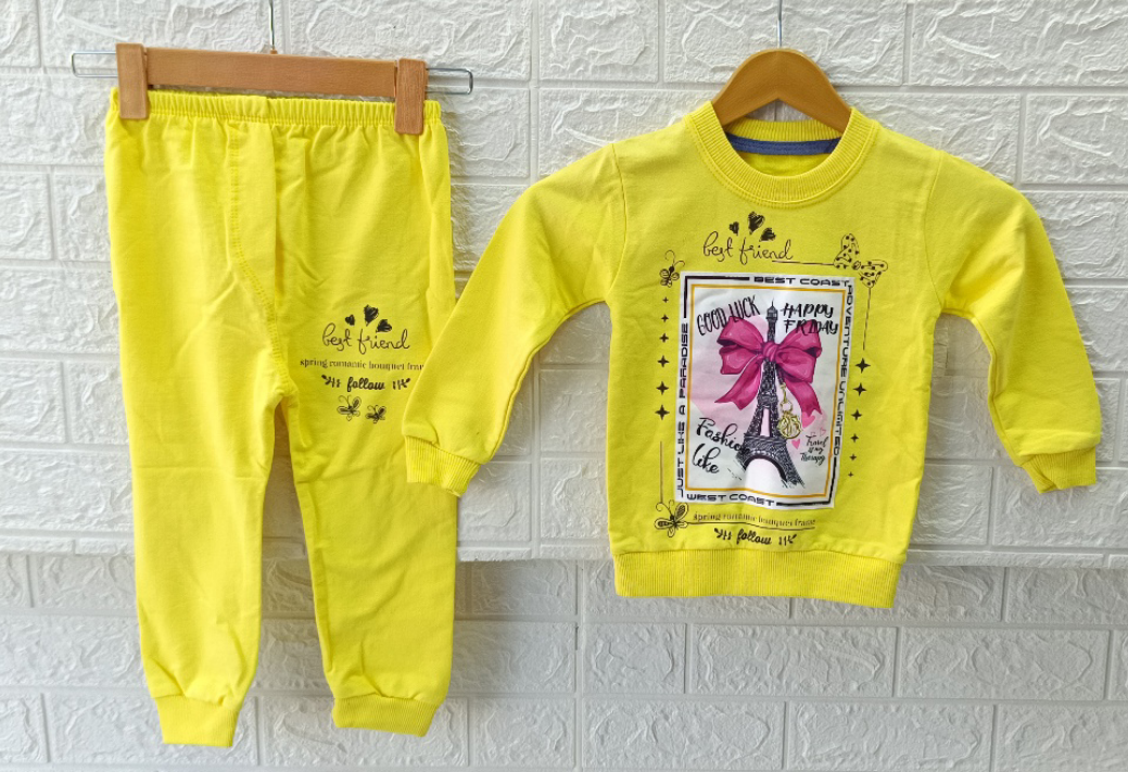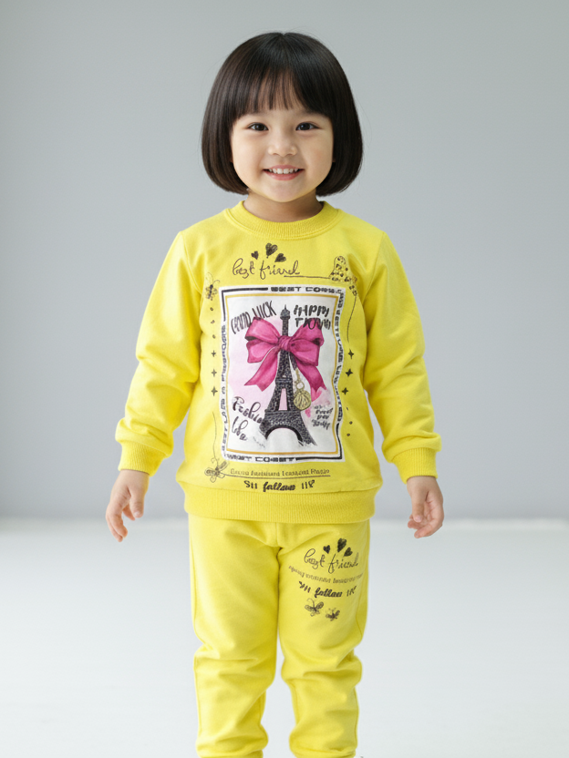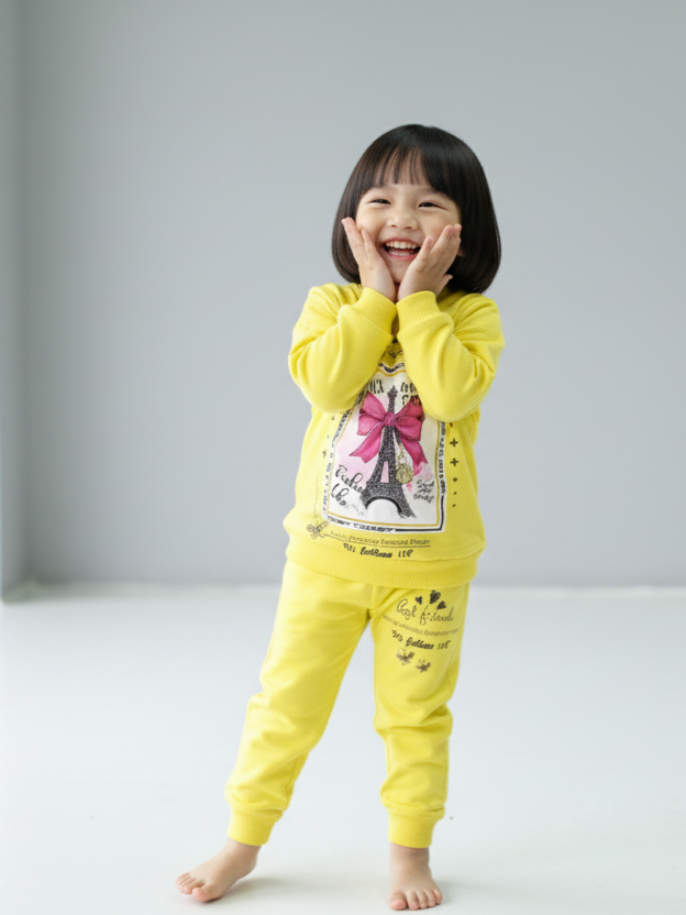 ست بلوز شلوار دخترانه مدل چراغدار وارداتی رنگ لیمویی