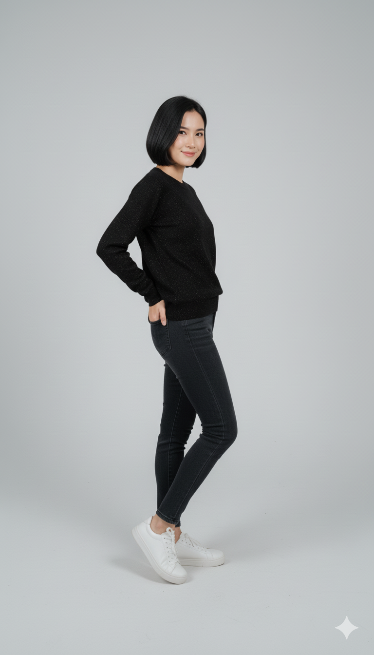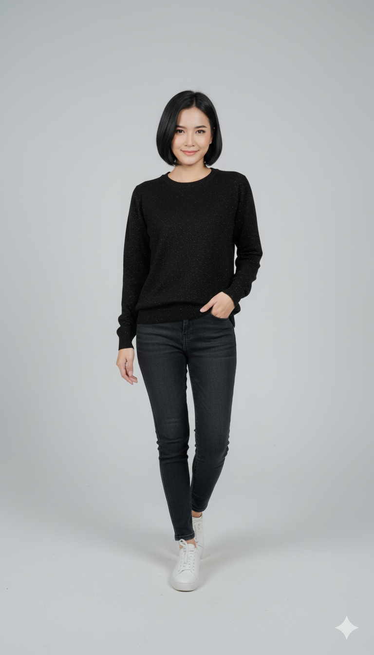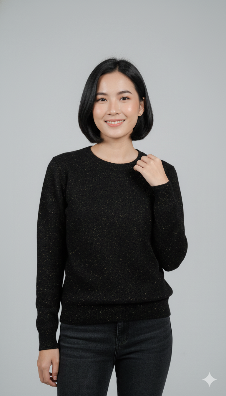 بافت گپ زنانه وارداتی یقه گرد شاین رنگ مشکی کد 3078