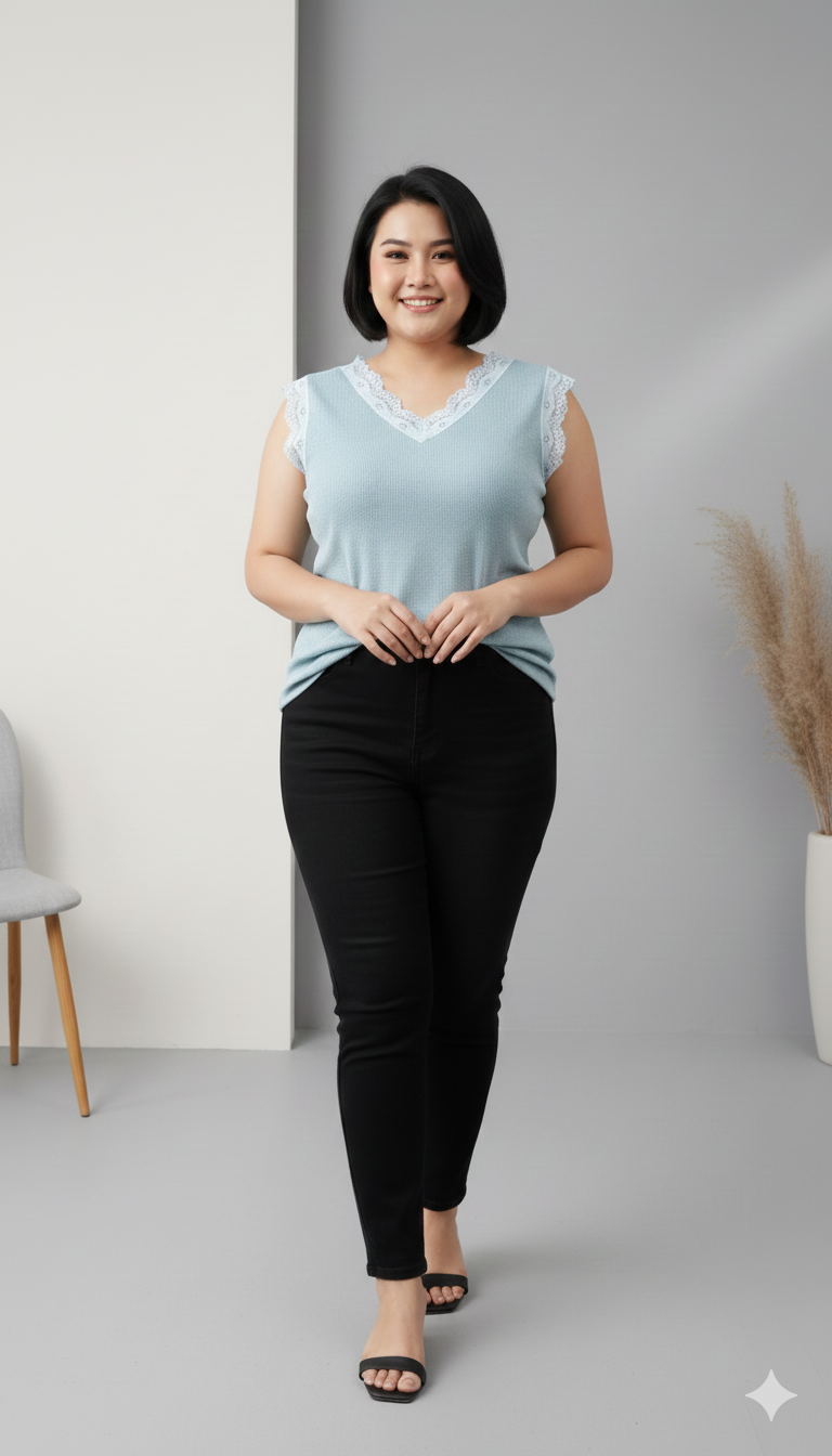 تاپ کبریتی زنانه مدل یقه هفت لبه گیپور کد 3016
