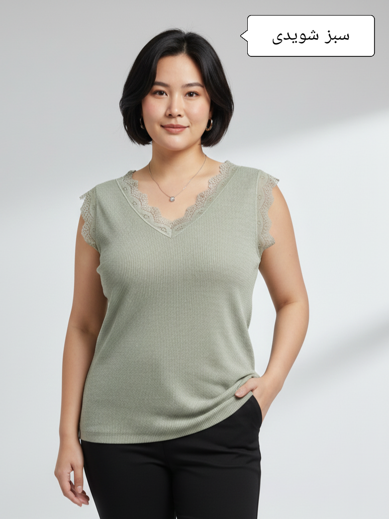 تاپ کبریتی زنانه مدل یقه هفت لبه گیپور کد 3016