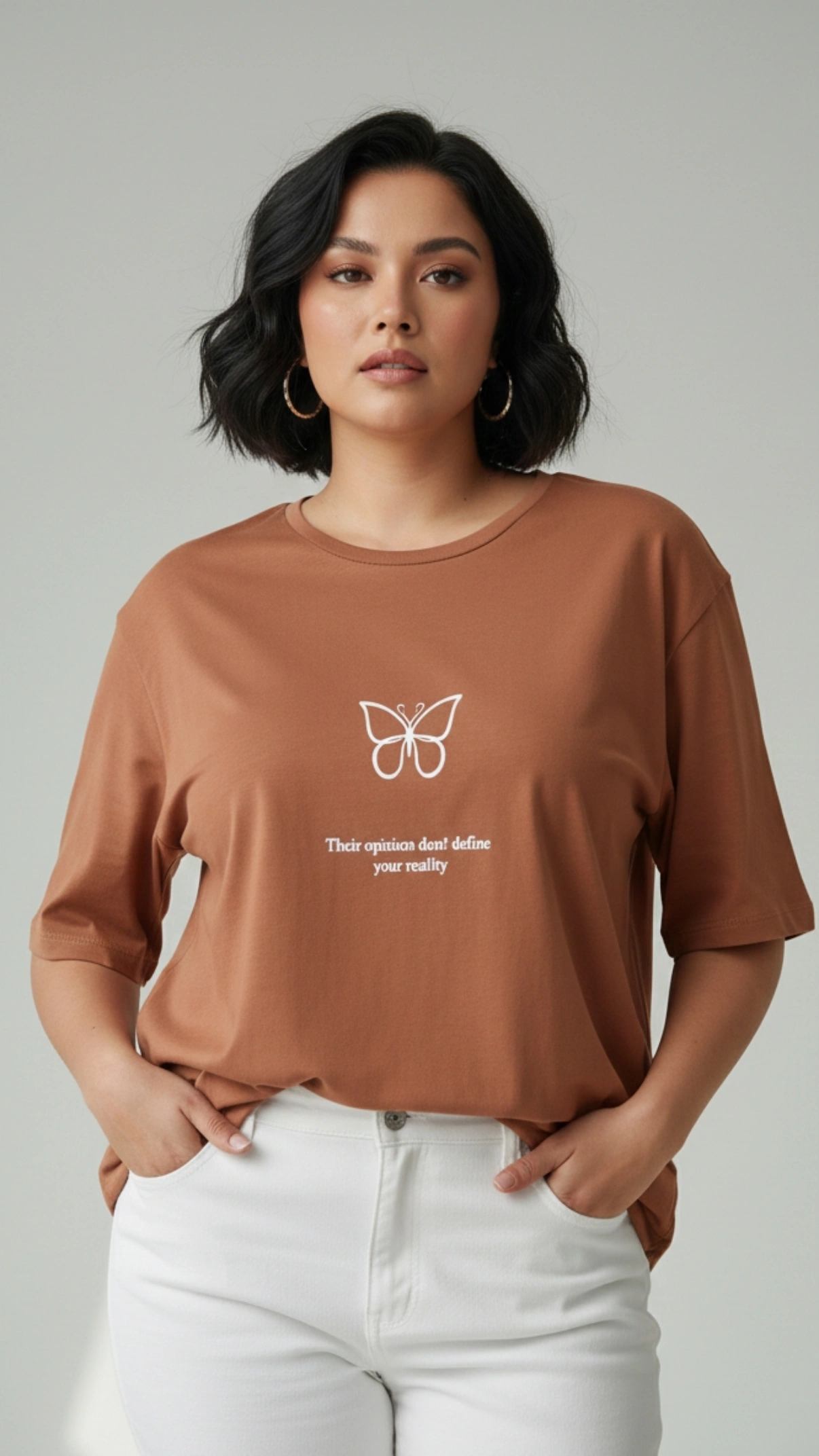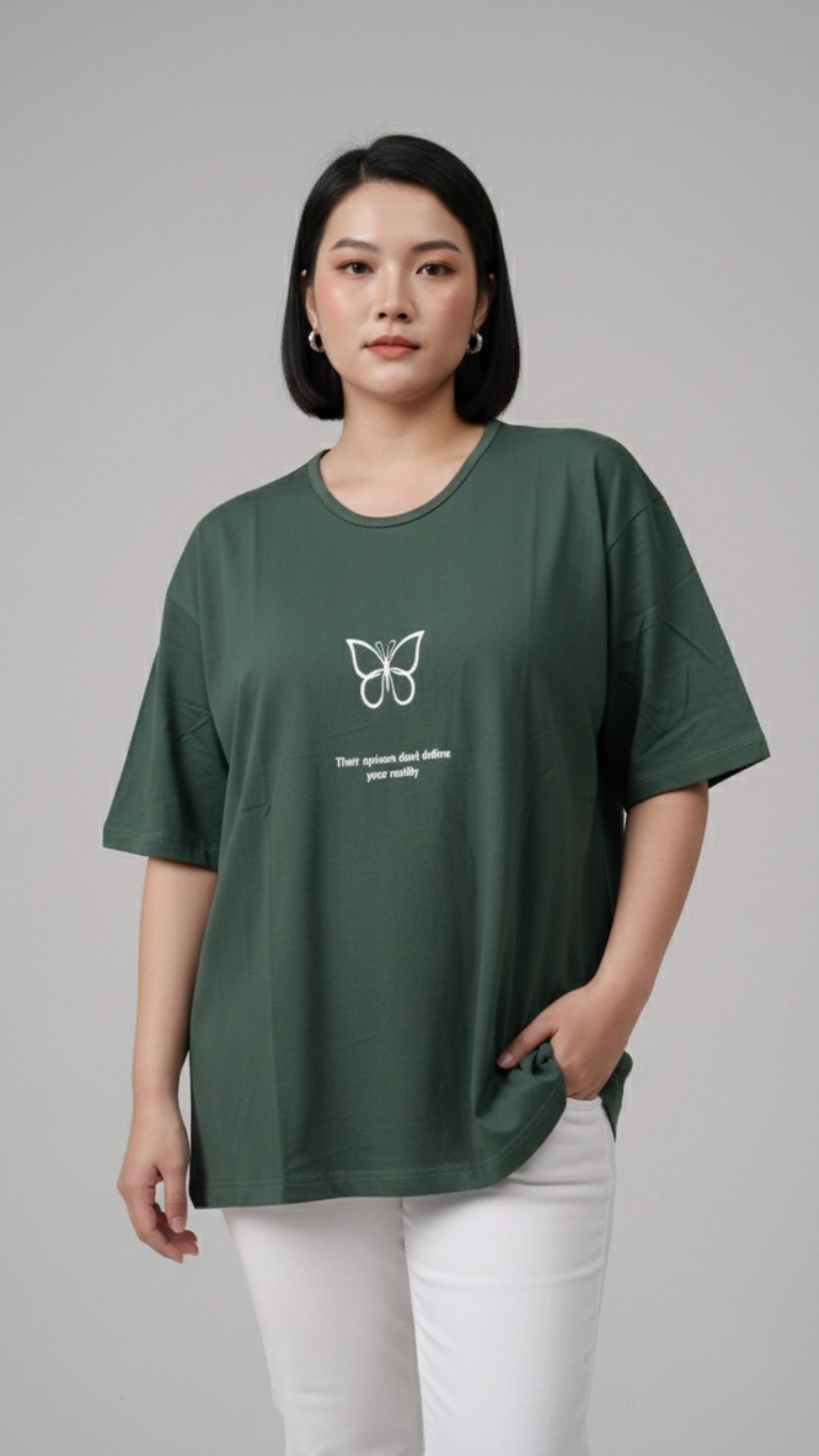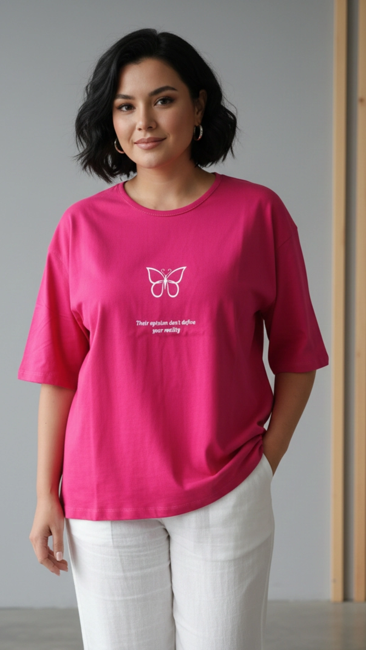 تیشرت زنانه قواره دار باکسی چاپ پروانه کد ۱۴۹۰