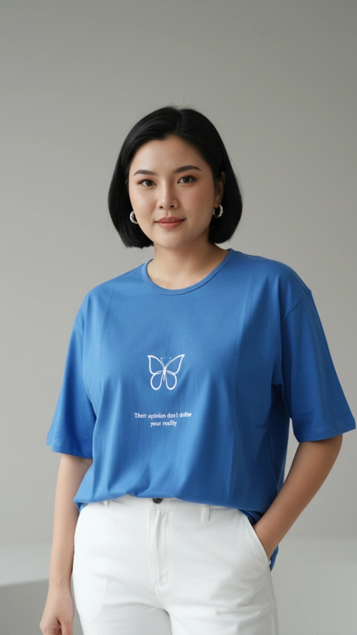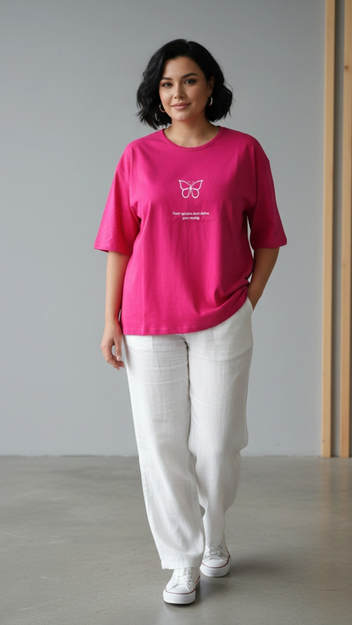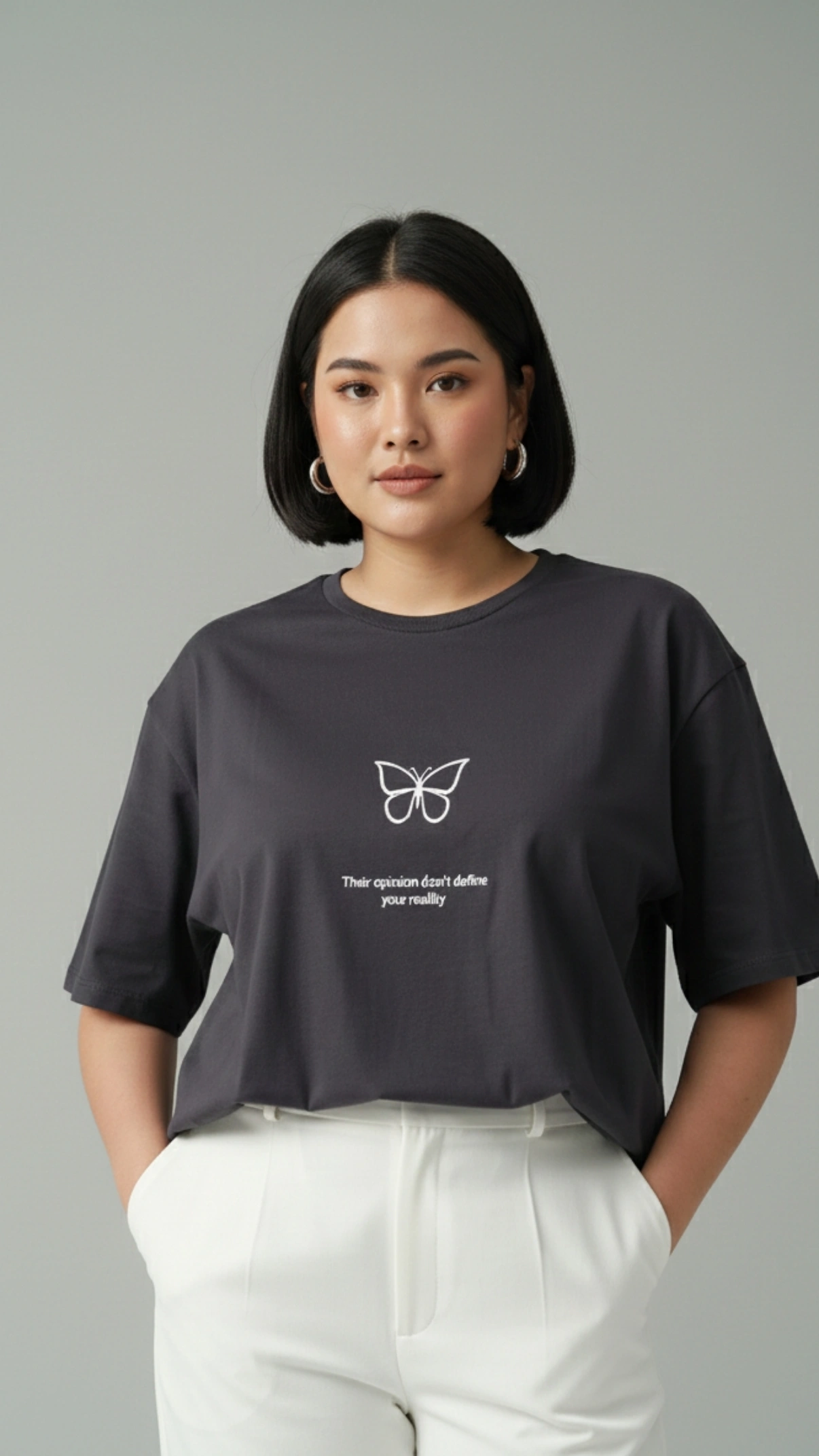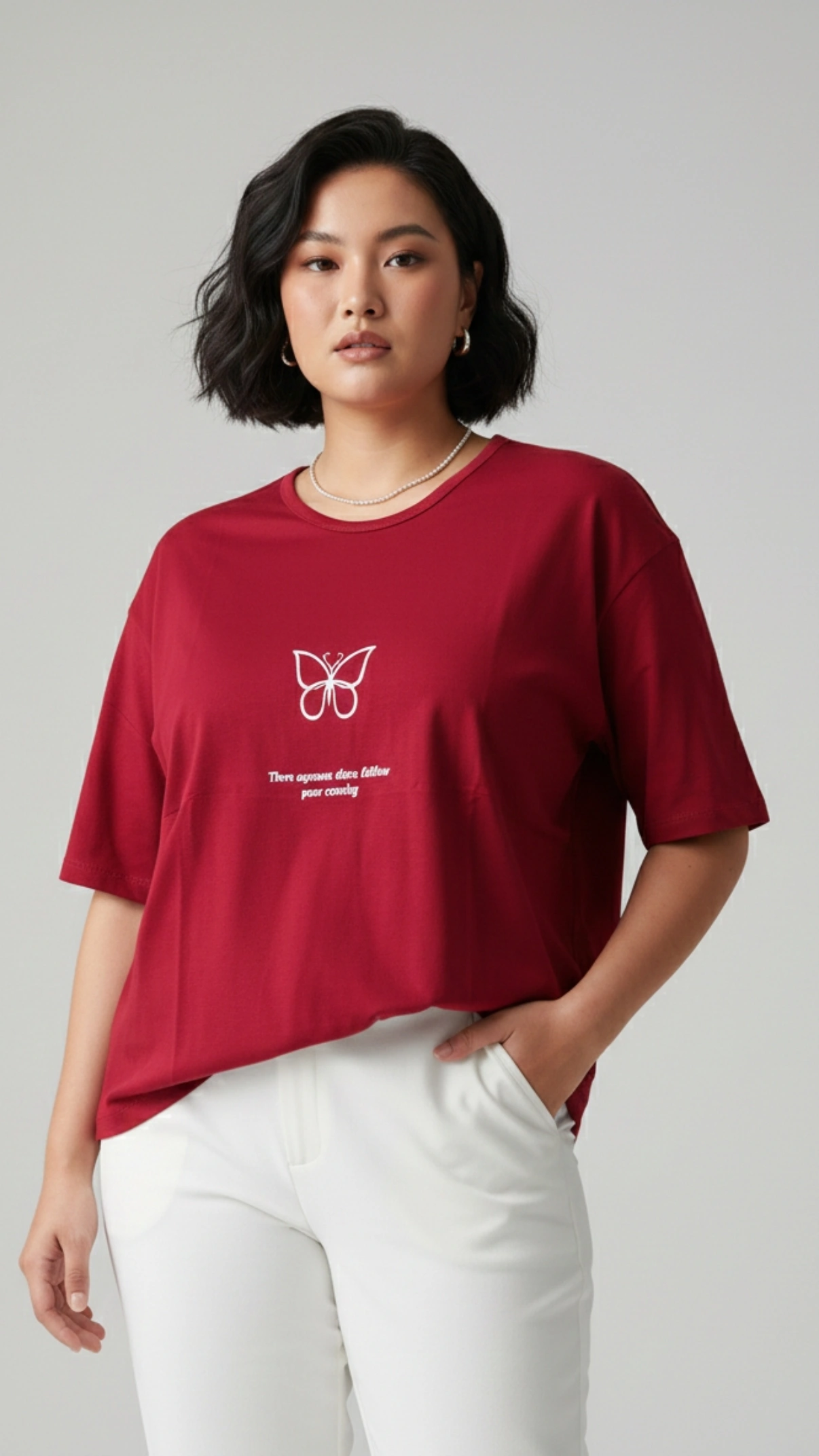 تیشرت زنانه قواره دار باکسی چاپ پروانه کد ۱۴۹۰