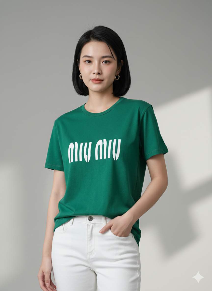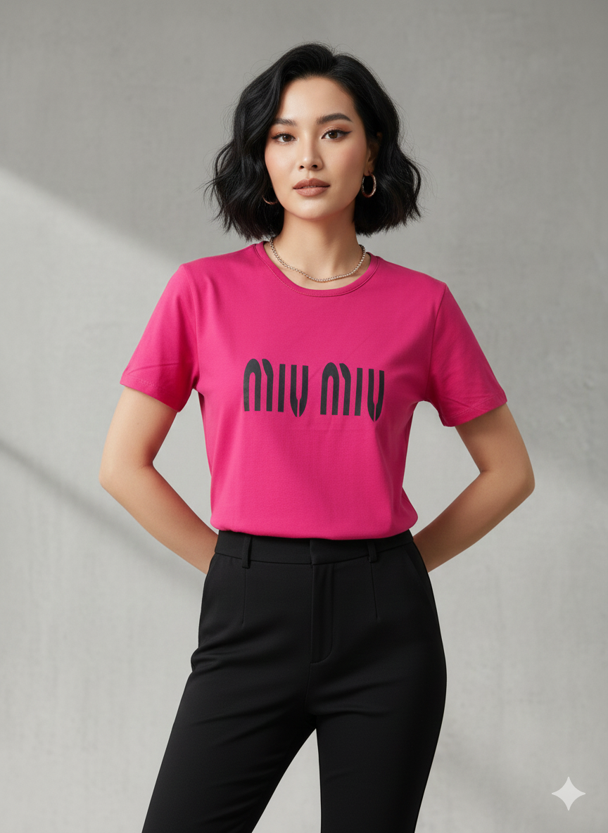 تیشرت زنانه پارچه سوپر پنبه طرح MIU MIU کد 2096