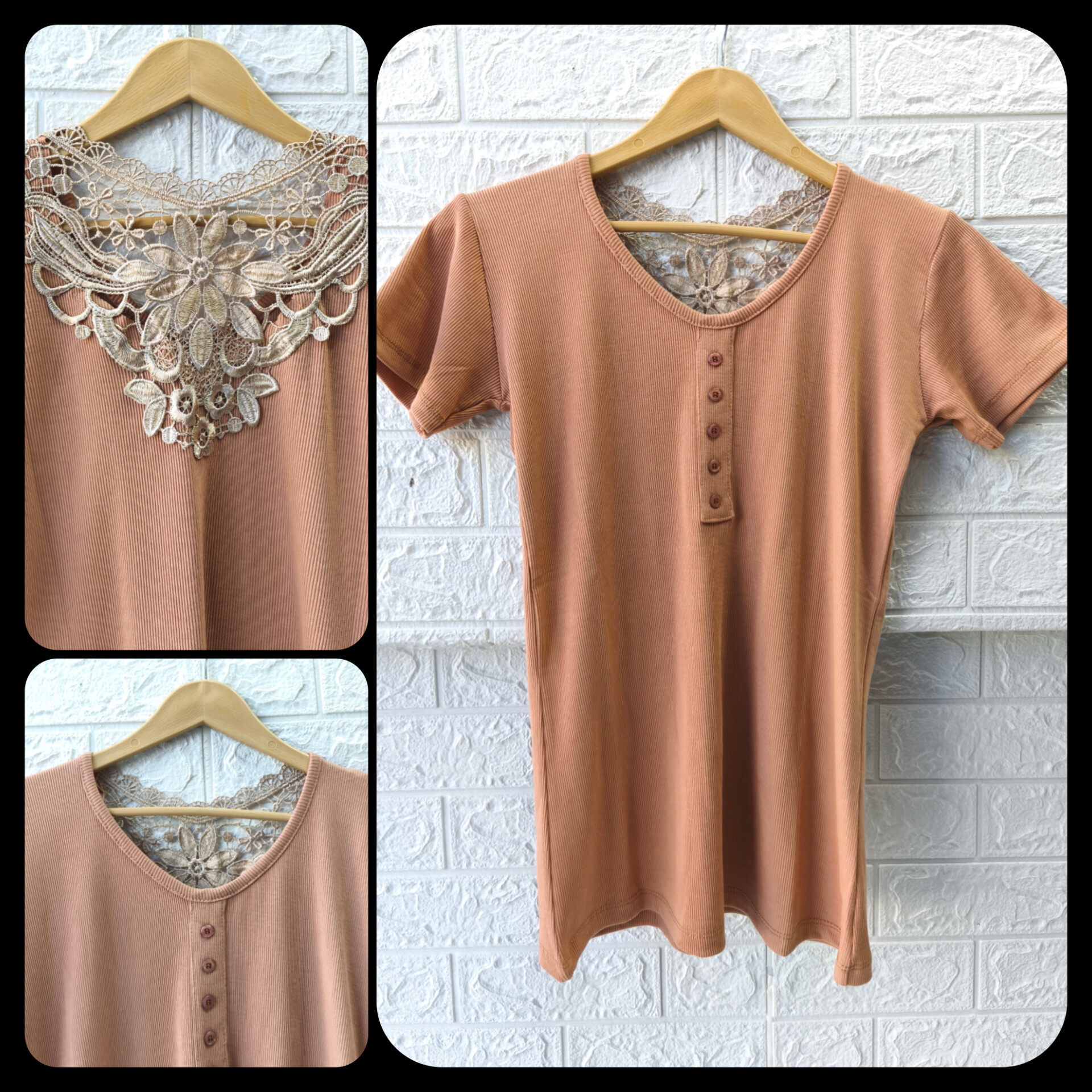 تیشرت کبریتی زنانه مدل پشت گیپور کد ۳۰۱۵