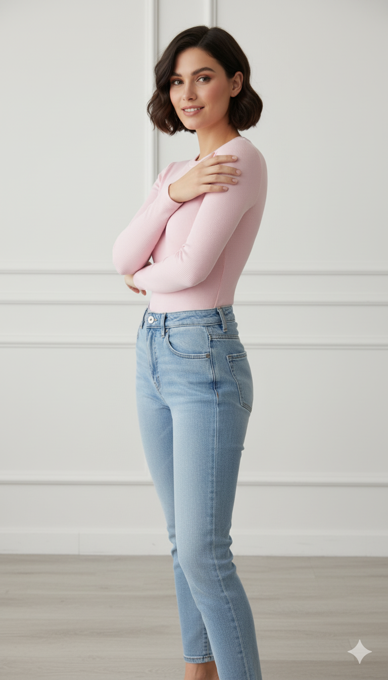 بادی آستین بلند یقه گرد پارچه کبریتی کشباف مناسب سایز 34 تا 44