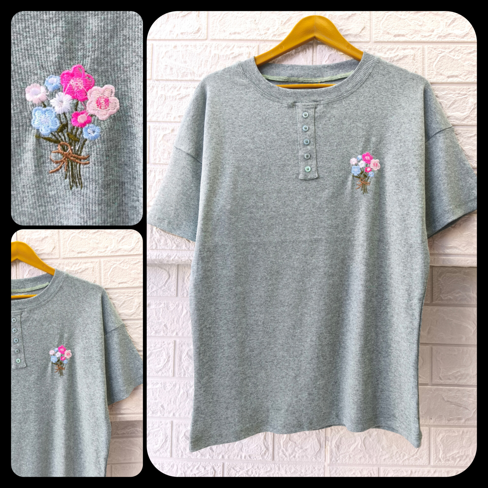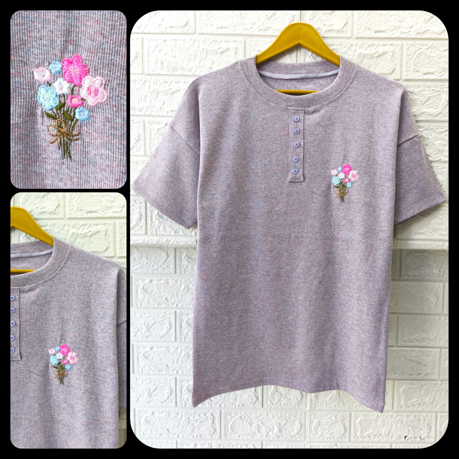 تیشرت کبریتی زنانه مدل خفاشی گلدوزی دسته گل کد