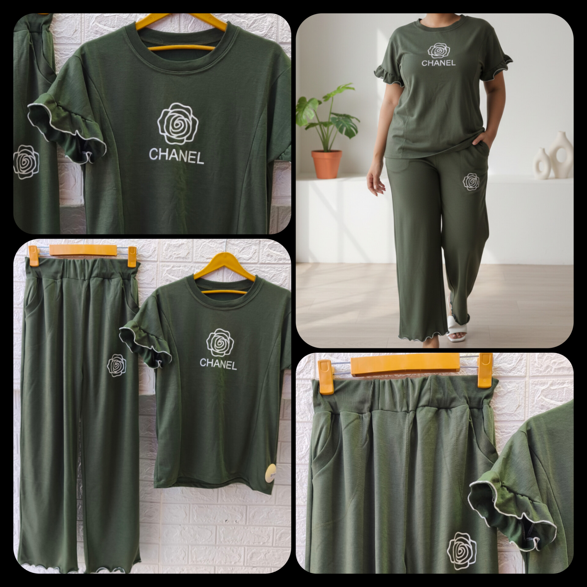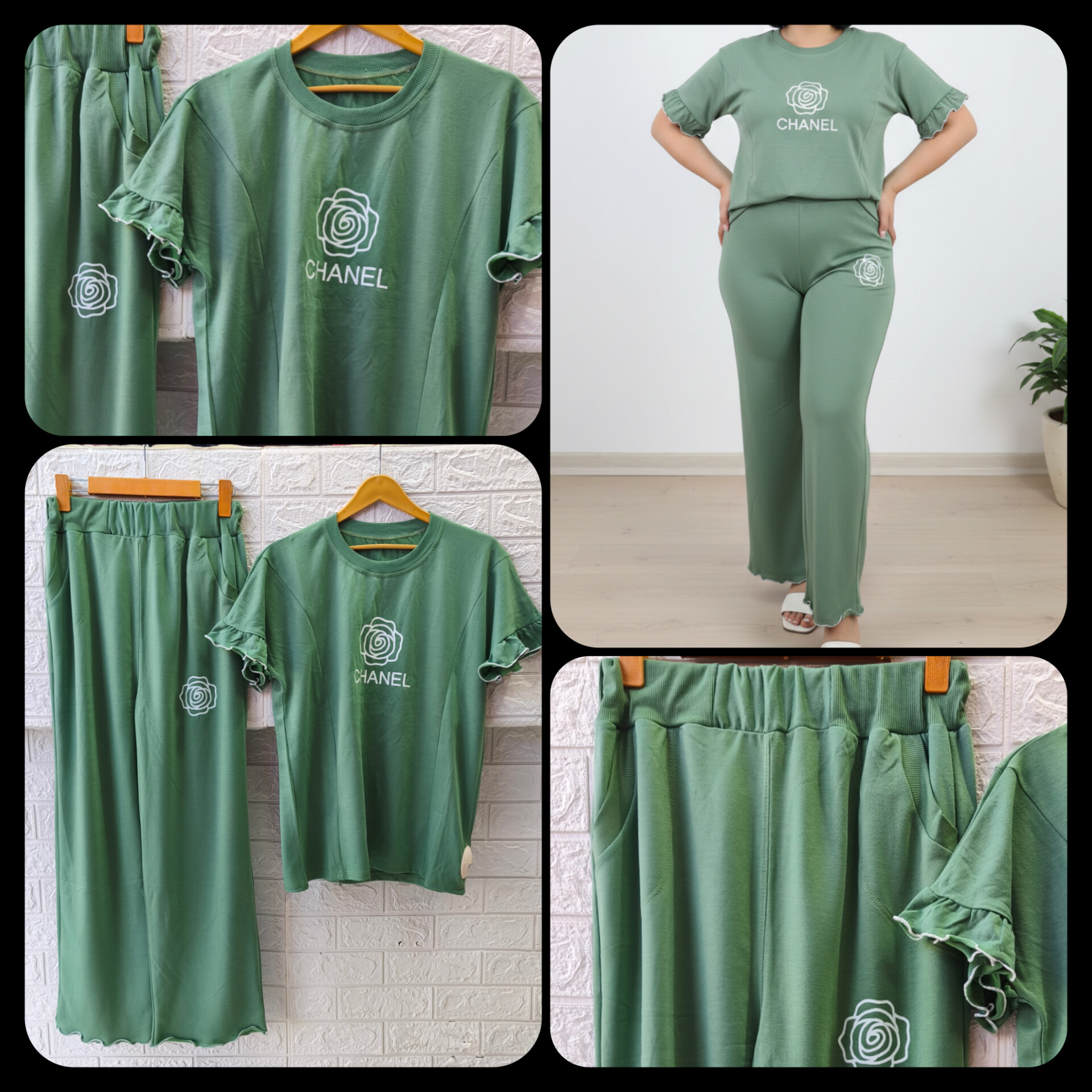 دستهبندی: ستجنس پارچه: دورس لاکرا دار 4 فصلسایز بندی: فری سایز 36 تا 46قد تیشرت: 65 سانتعرض سینه تیشرت: 53 سانت و تا 60 سانت کشسانی داردقد آستین از سر شانه : 21 سانتقد شلوار : 100 سانتقد فاق شلوار : 36 سانتعرض کمر شلوار : 33 سانت و تا 56 سانت کشسانی داردعرض باسن شلوار : 57 سانت و تا 63 سانت کشسانی داردعرض ران شلوار : 29 سانتعرض دمپا شلوار : 25 سانتنمایش بیشتر