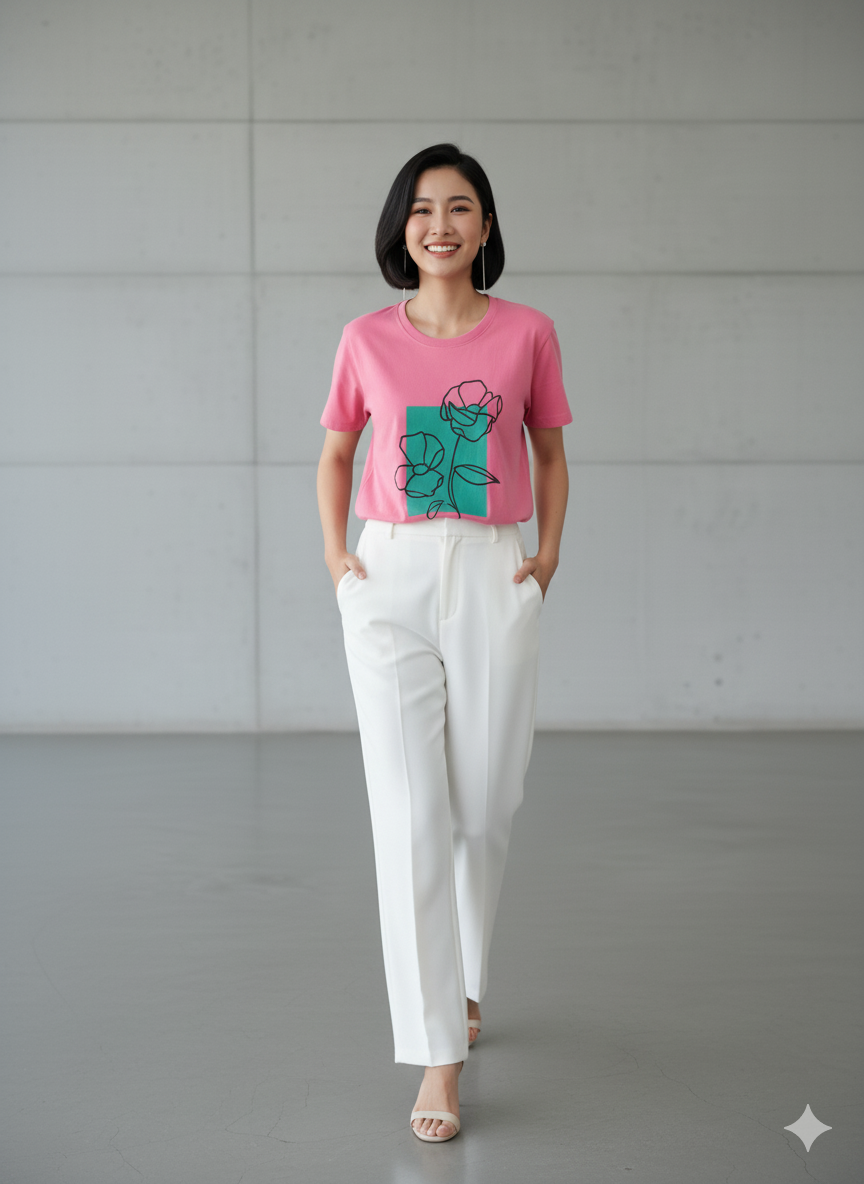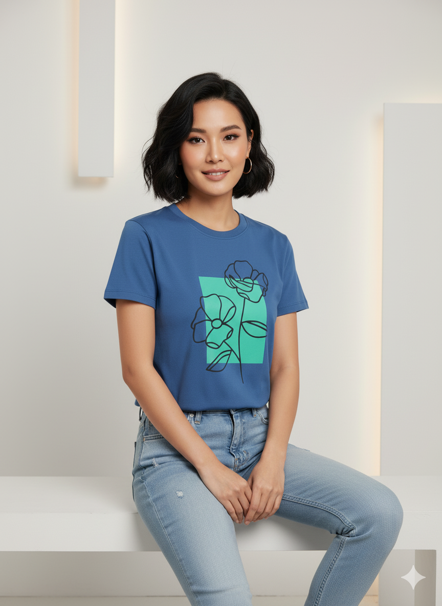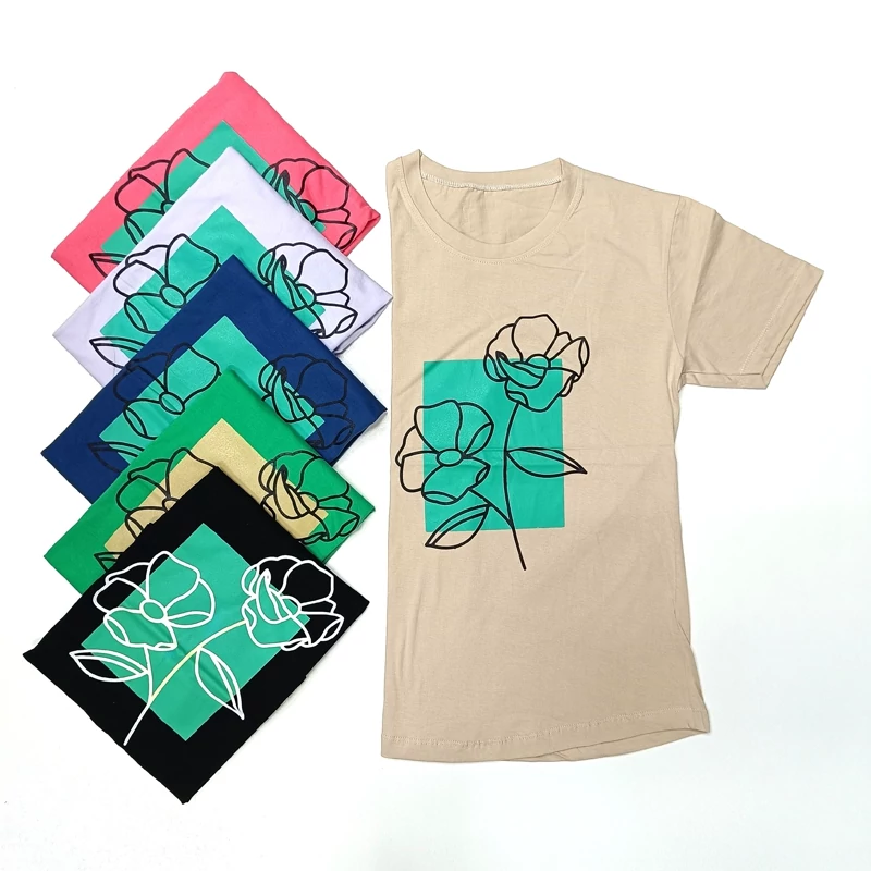 تیشرت زنانه،تیشرت پنبه سوپر با چاپ گل کد 3010