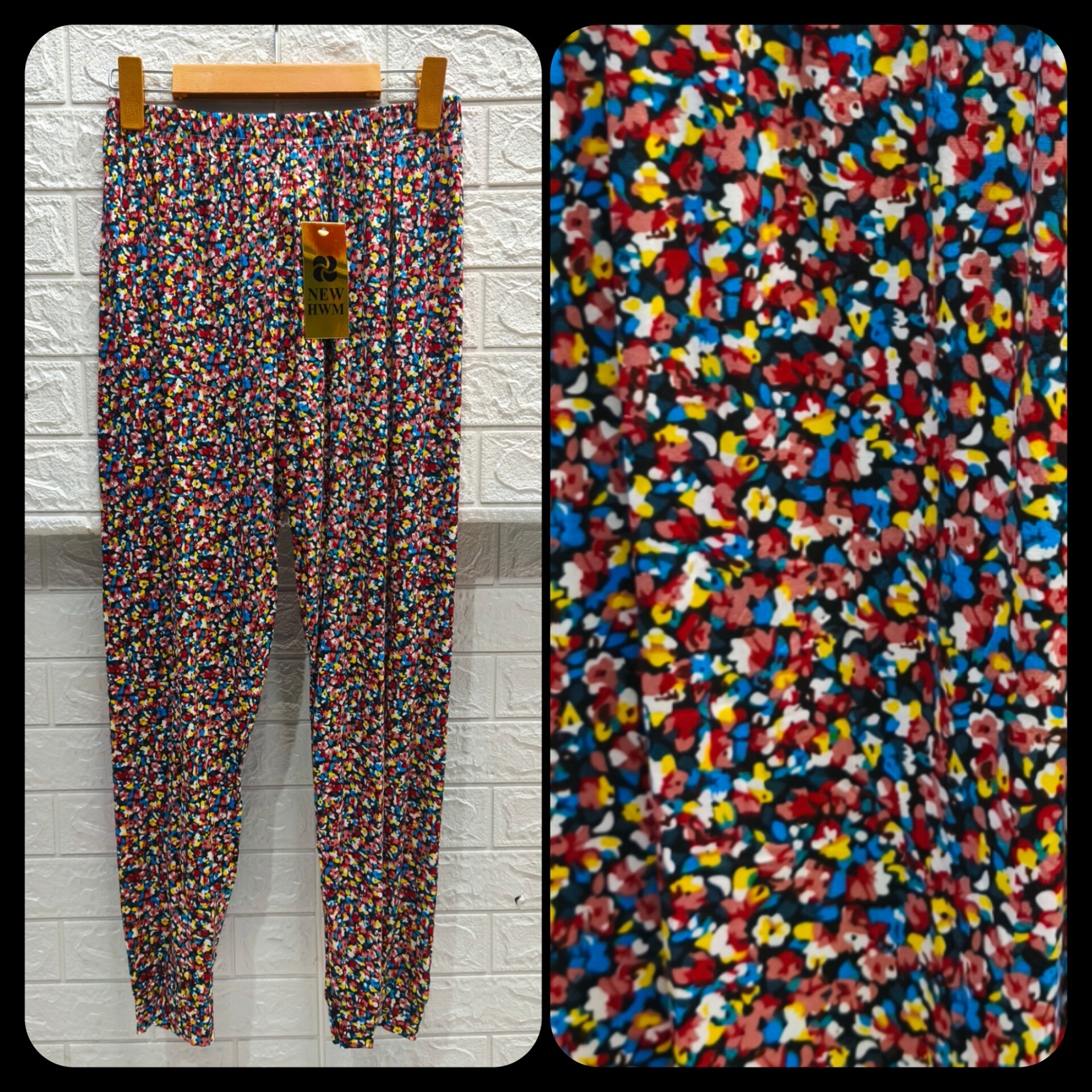 شلوار پنبه گیاهی زنانه مدل گل ریز وارداتی کد 1453