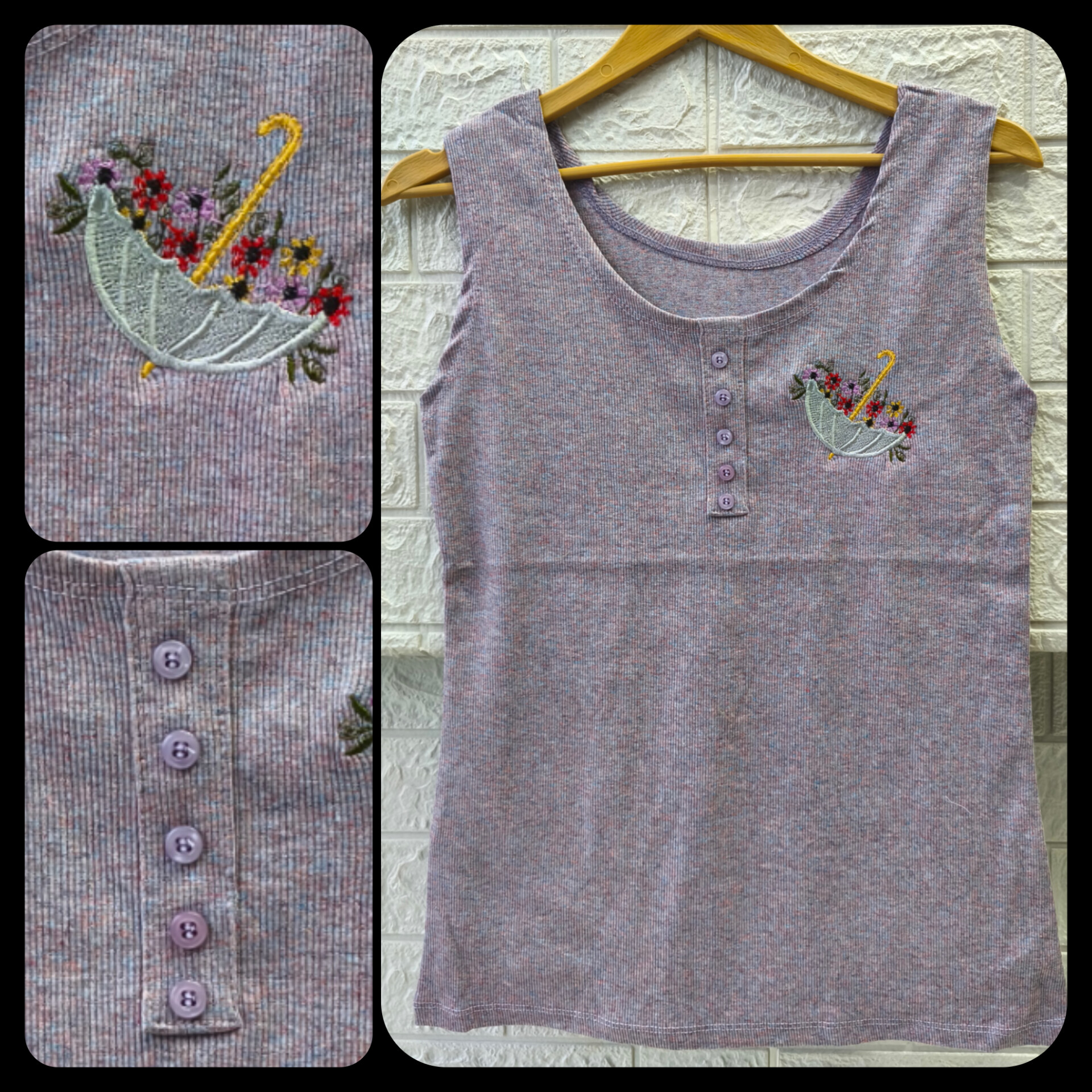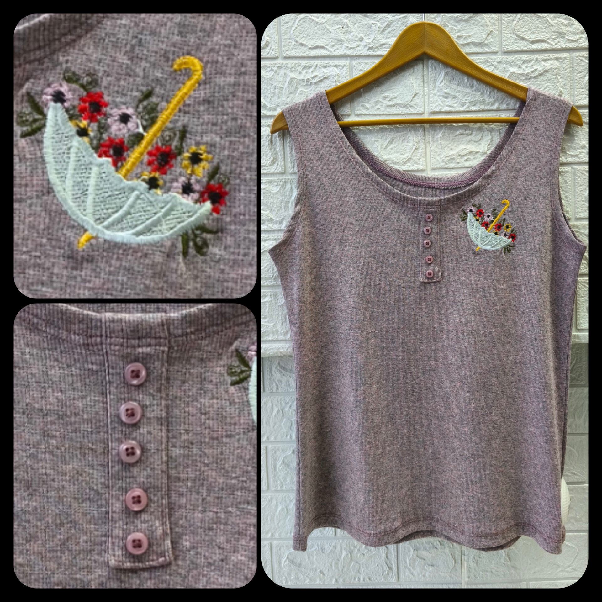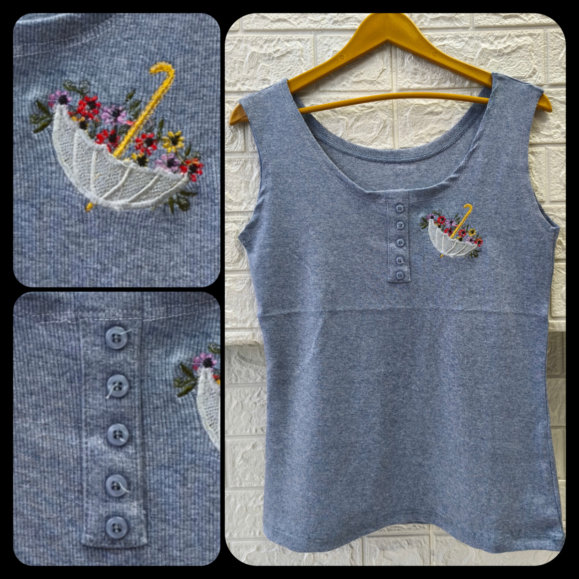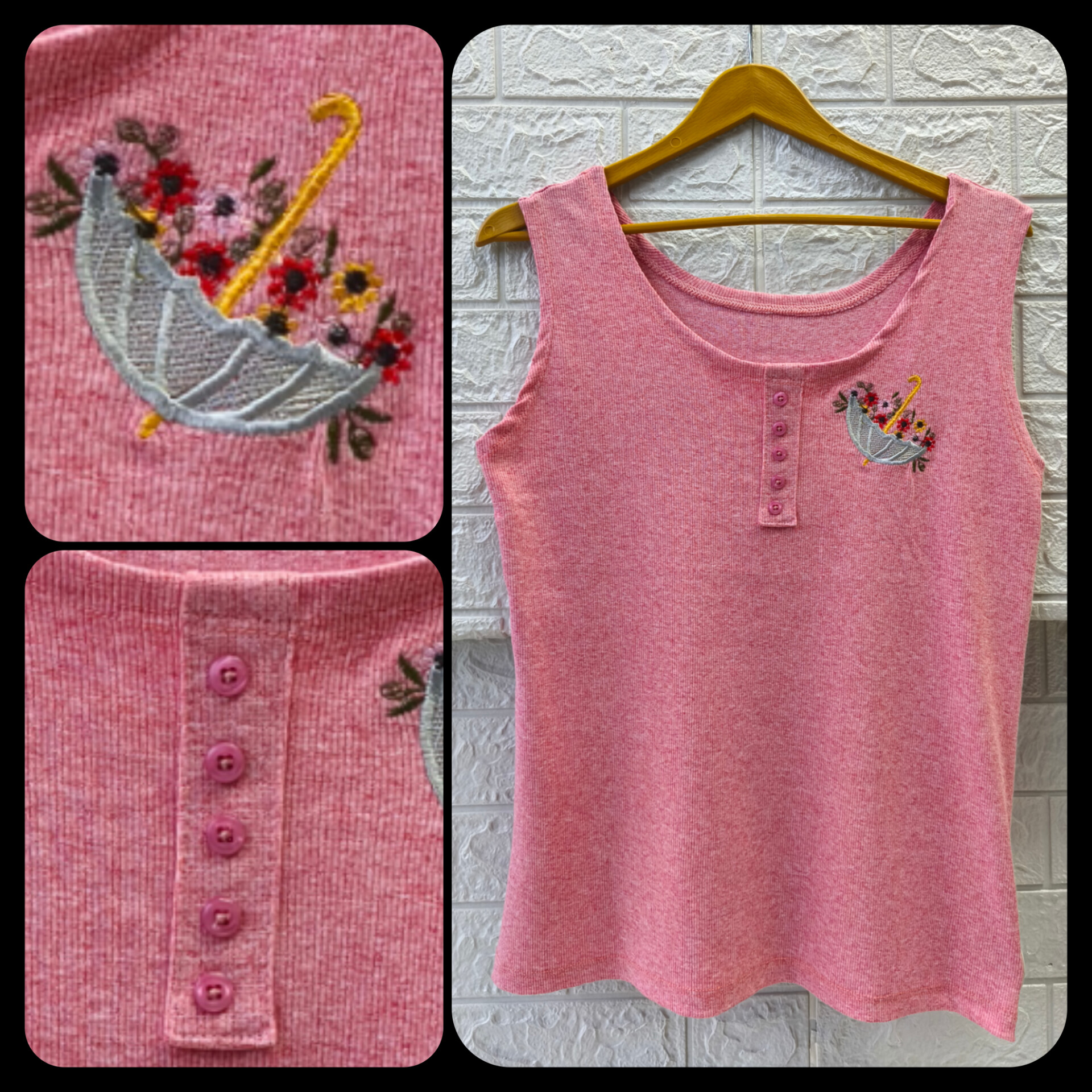 تاپ کبریتی زنانه مدل یقه گرد گلدوزی چتر کد ۱۵۵۴