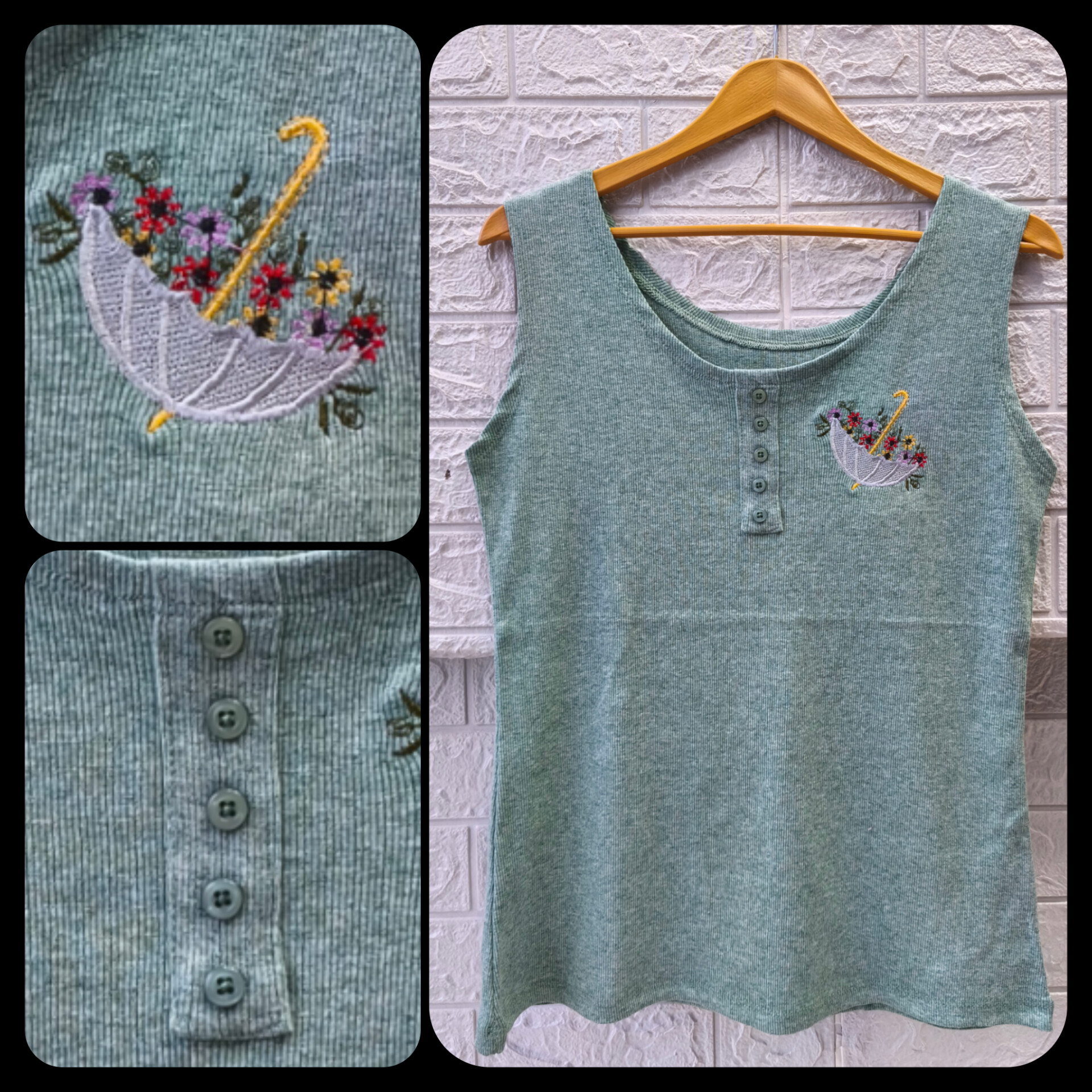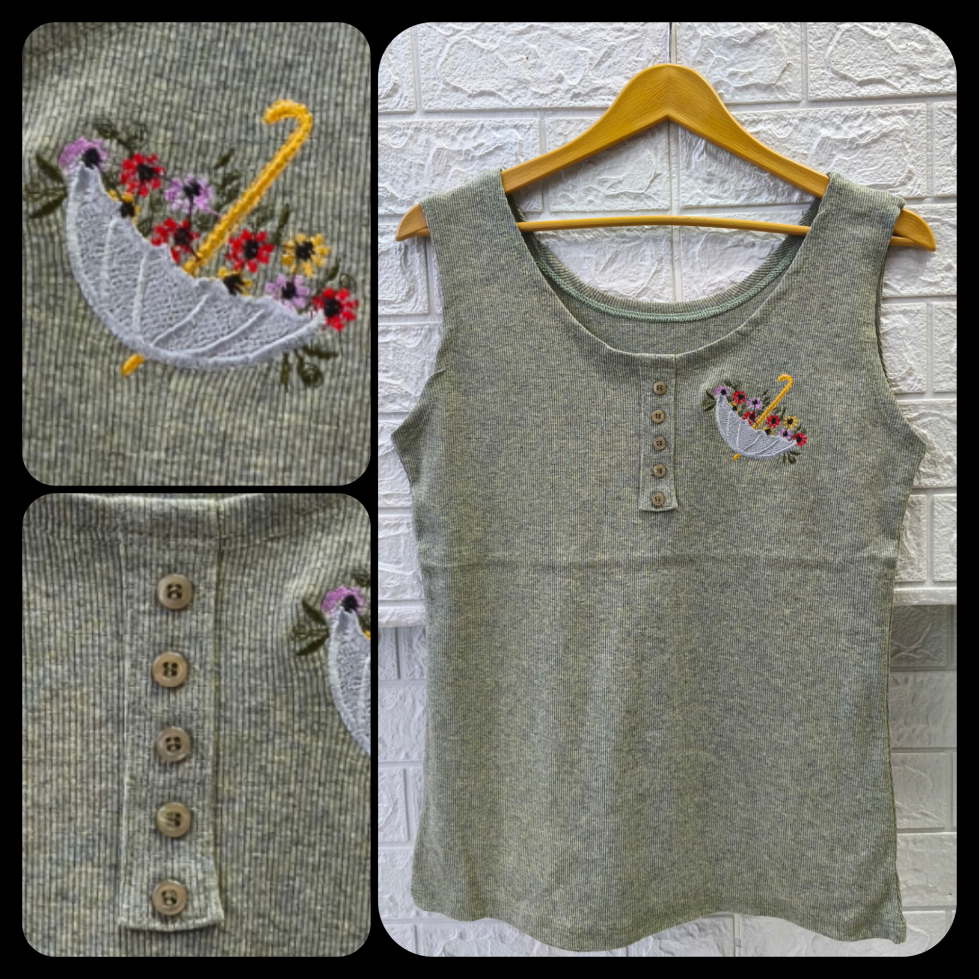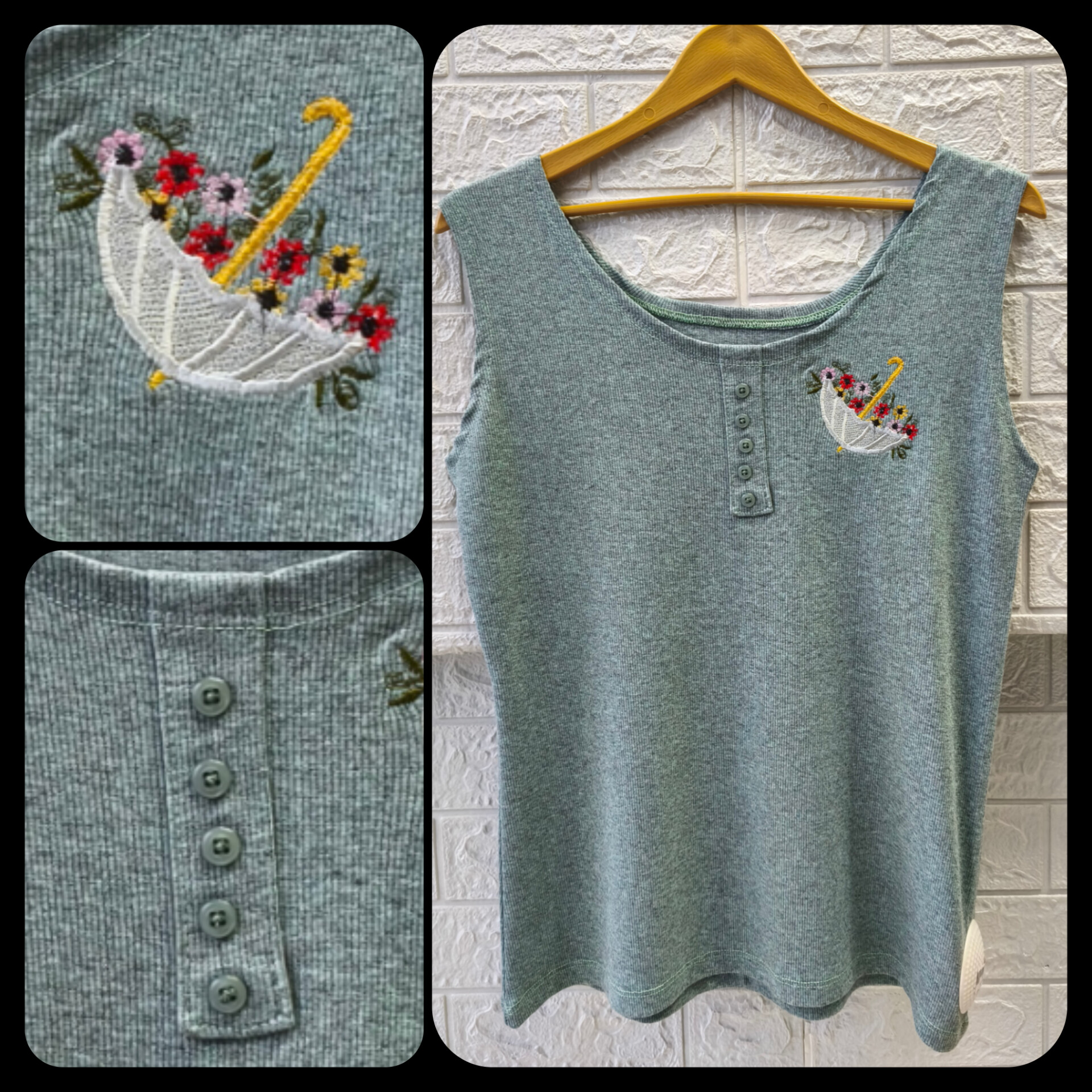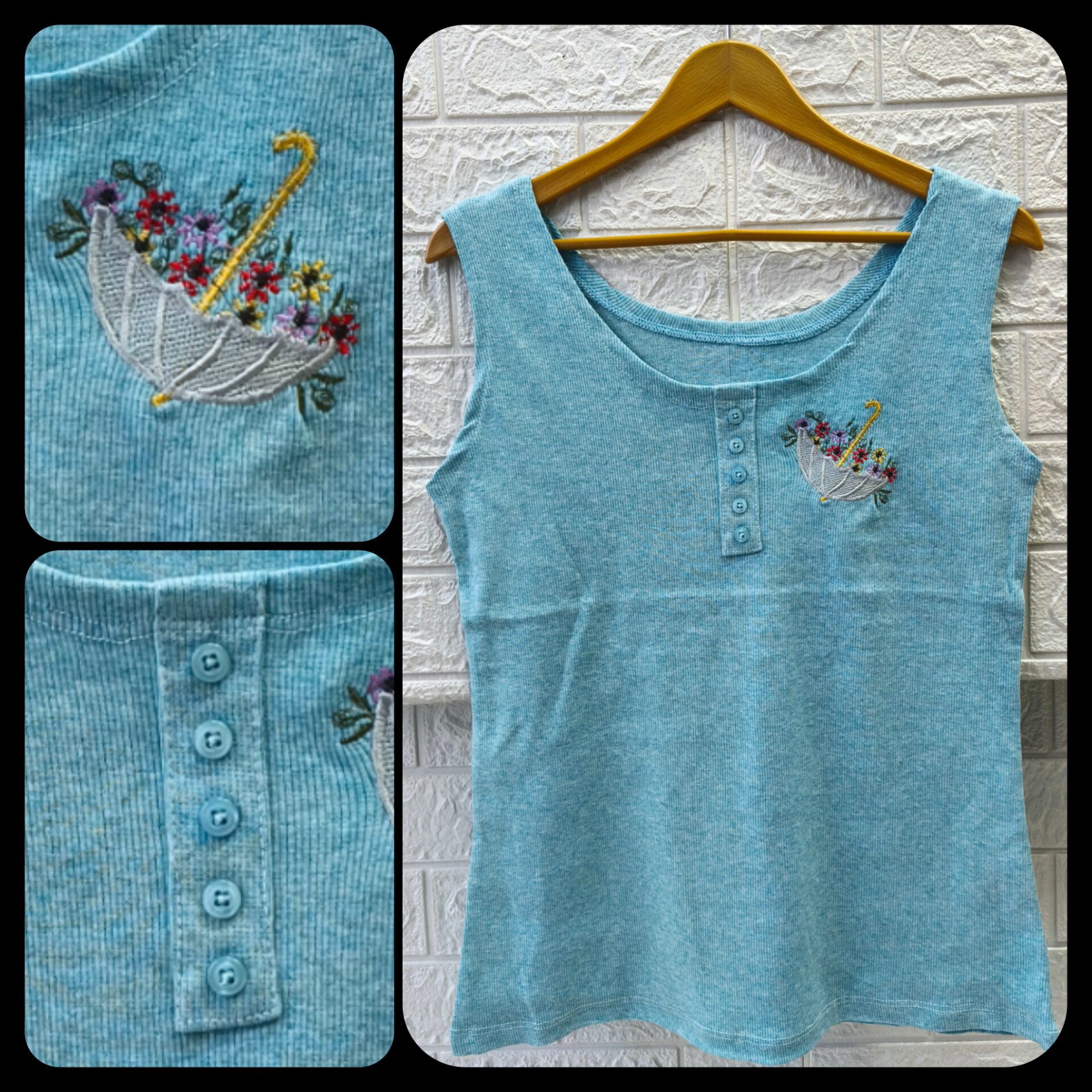 تاپ کبریتی زنانه مدل یقه گرد گلدوزی چتر کد ۱۵۵۴