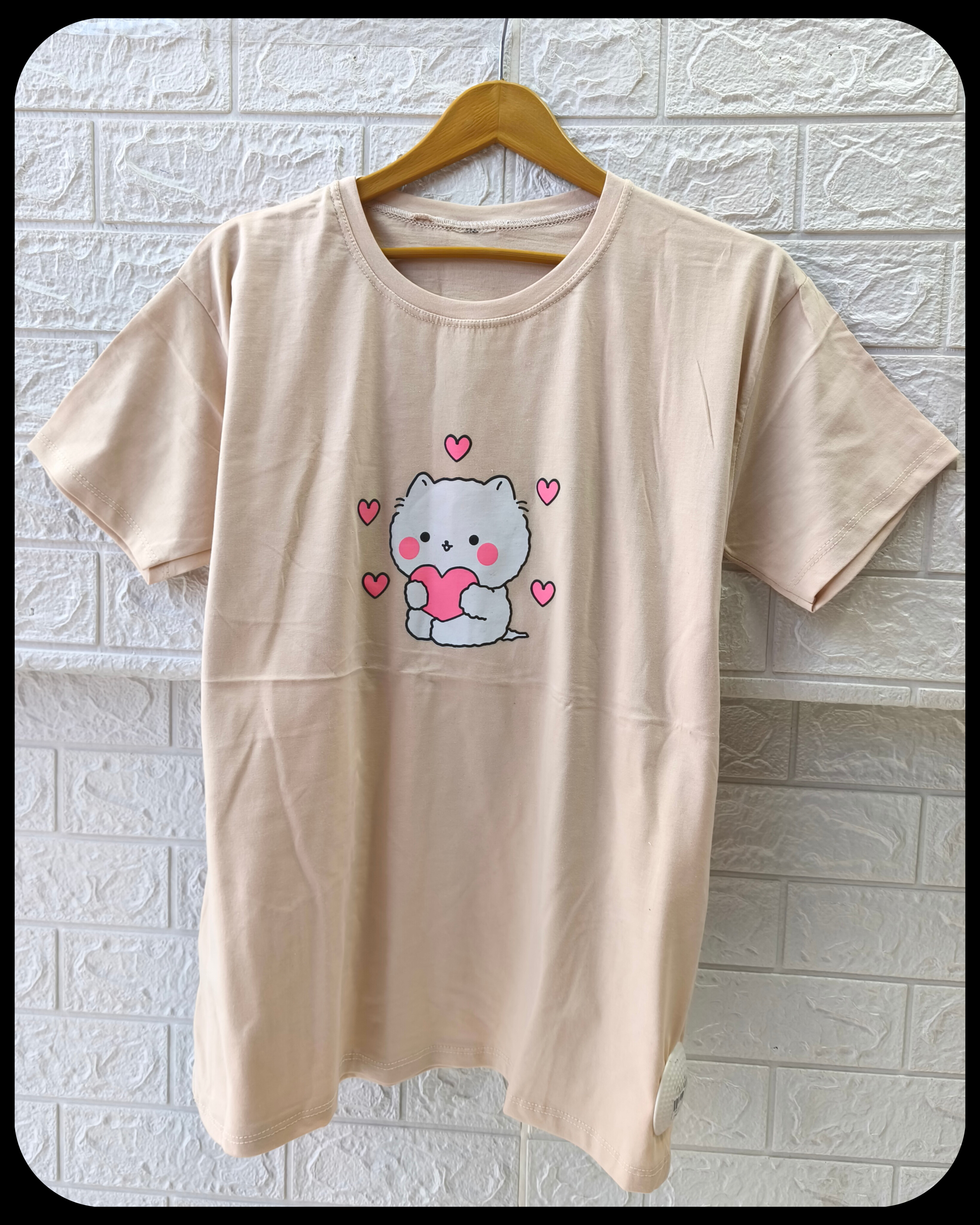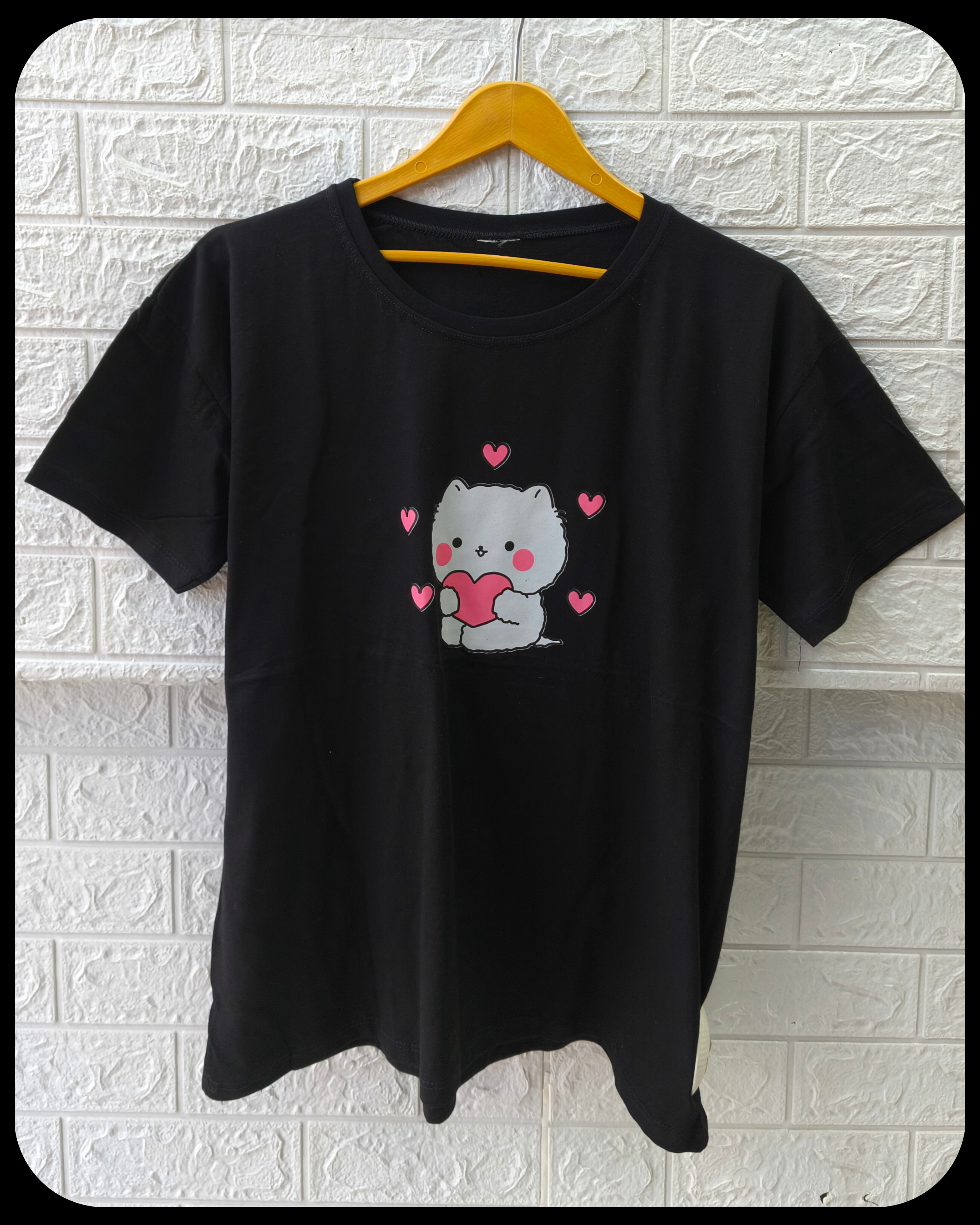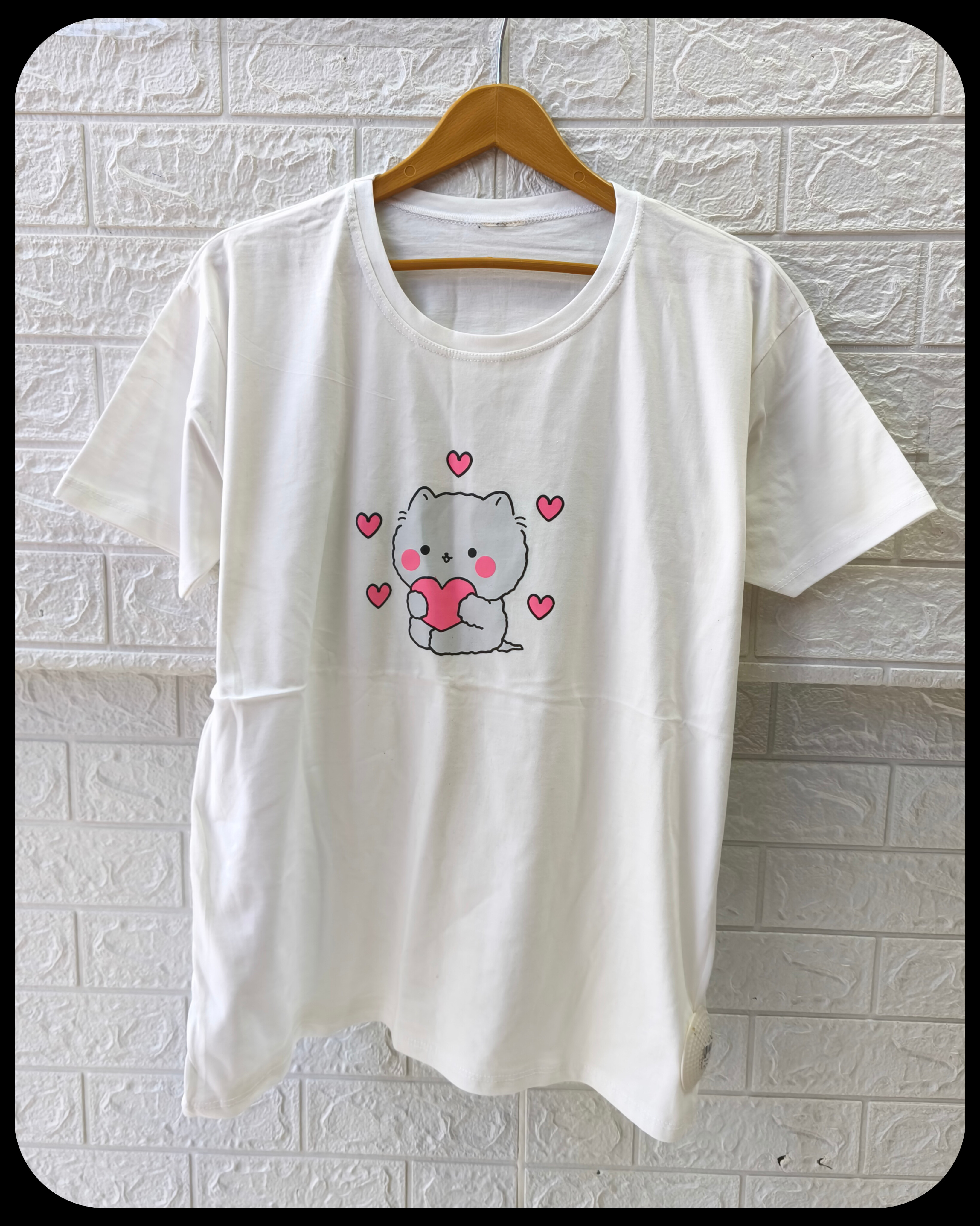 تیشرت زنانه سوپر پنبه قواره نرمال طرح گربه کیوت کد 2096