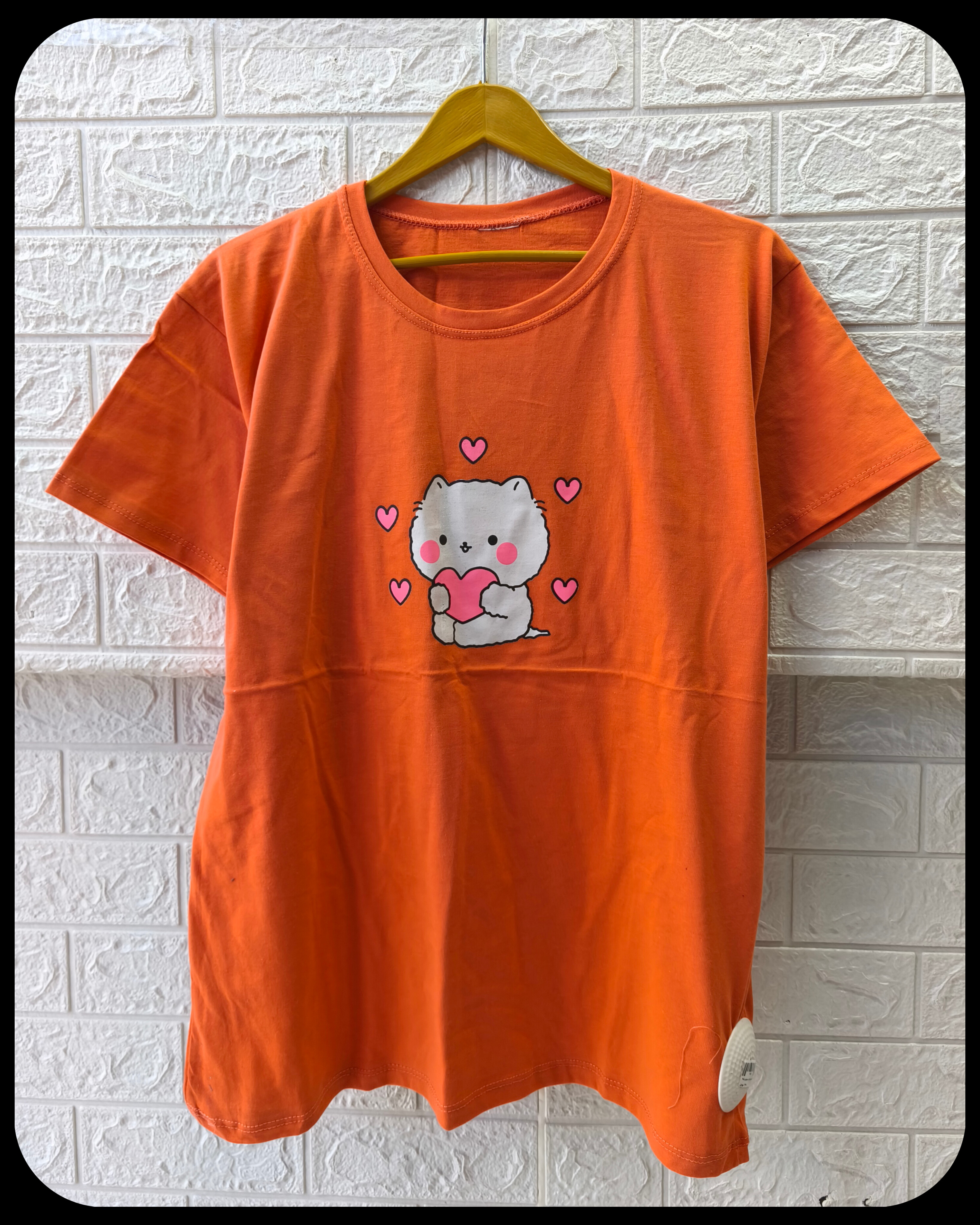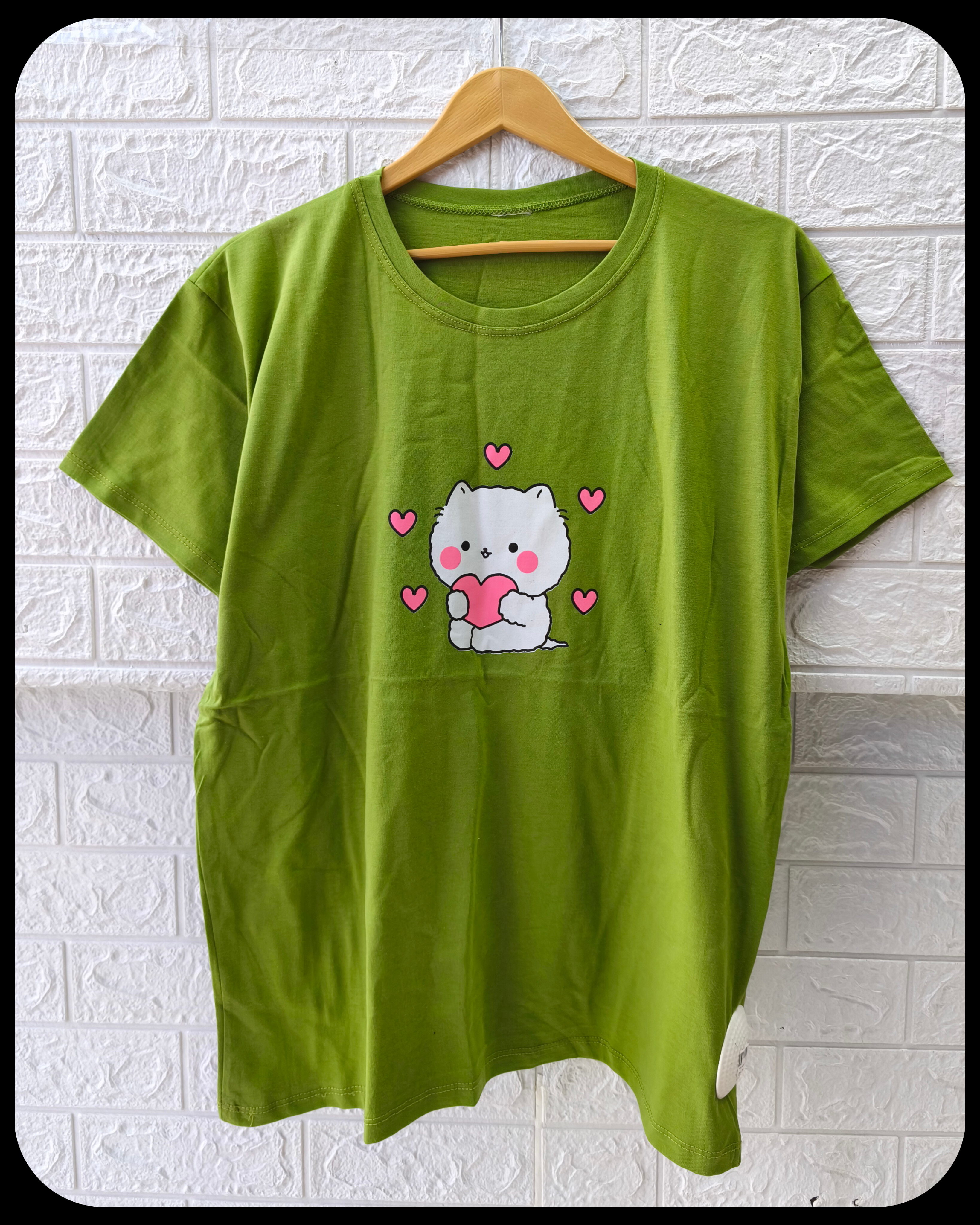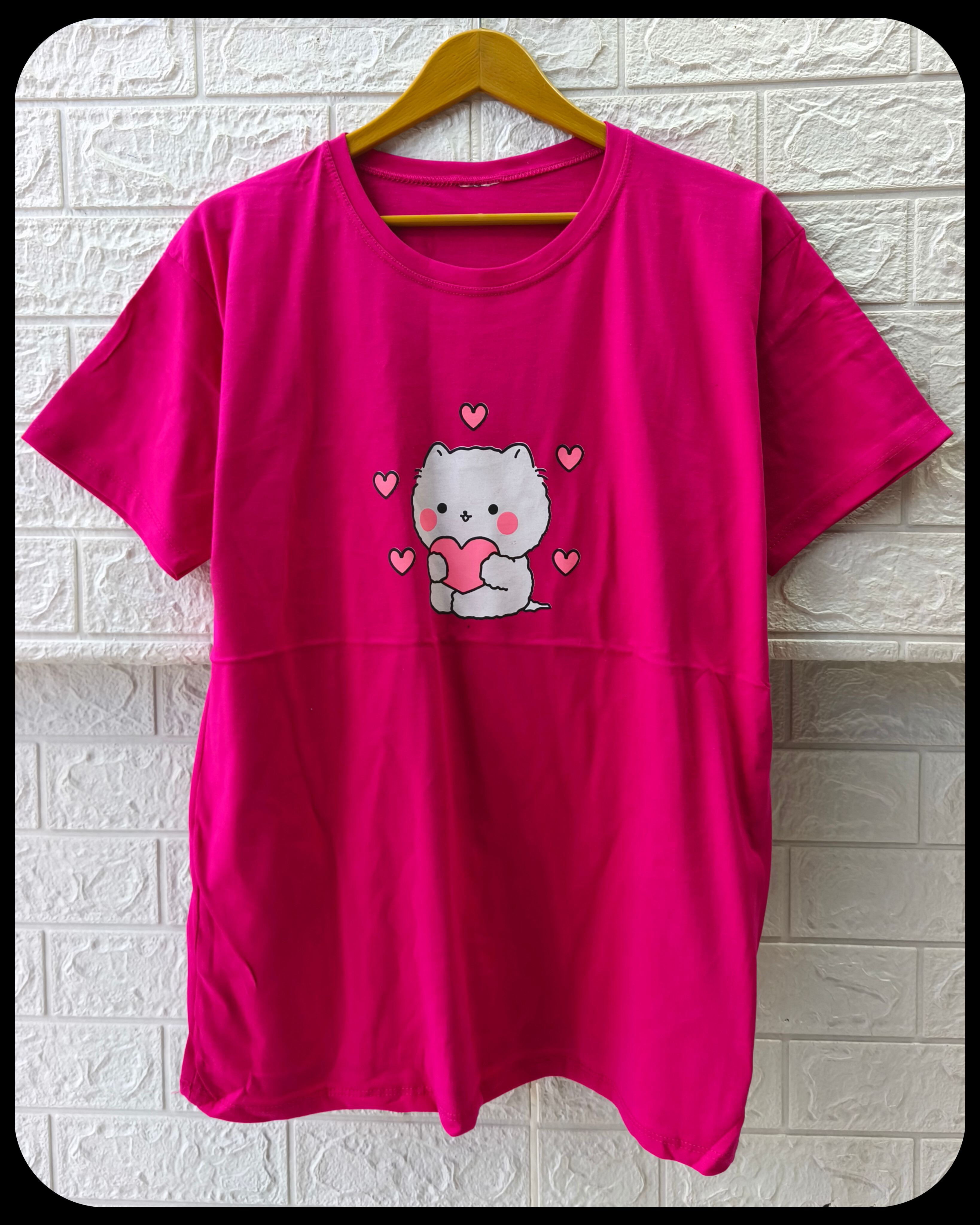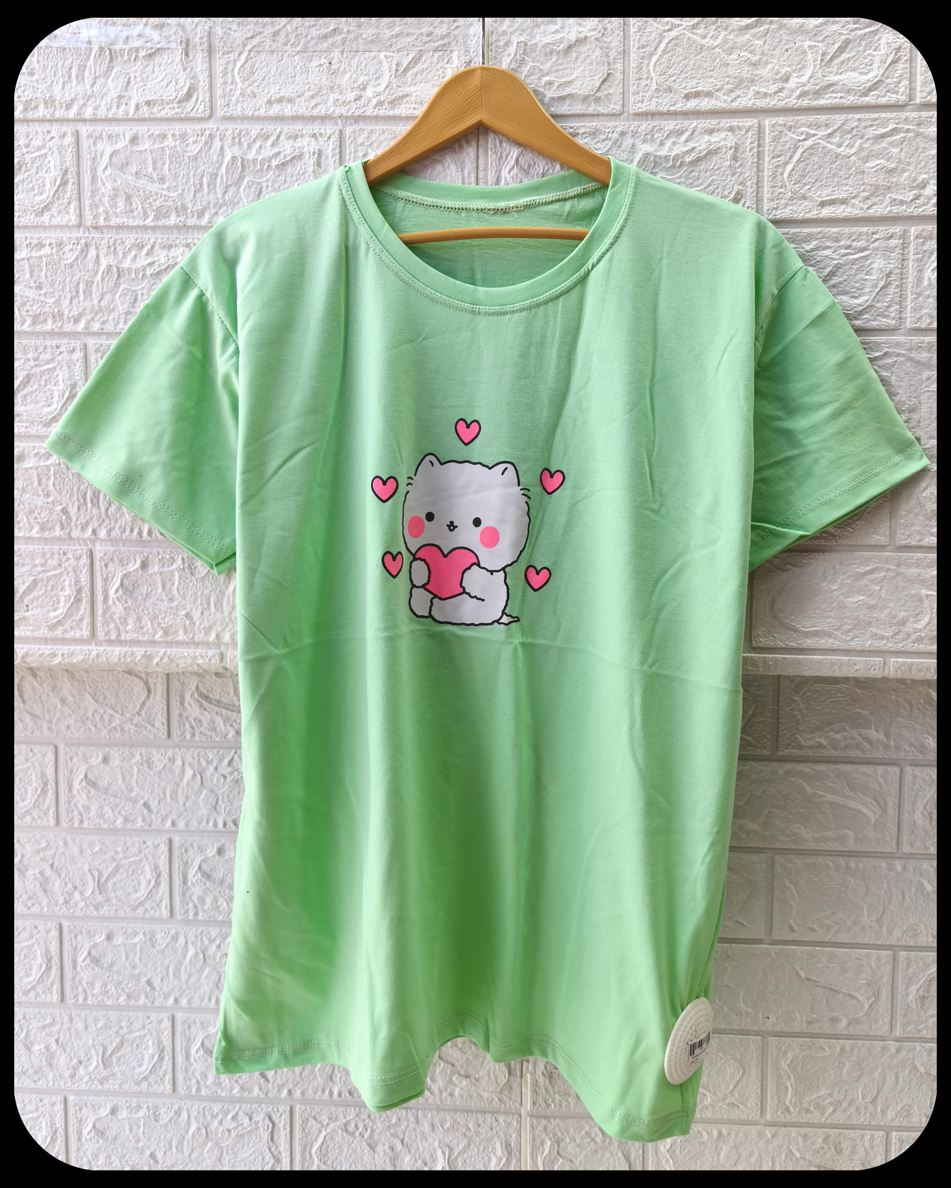 تیشرت زنانه سوپر پنبه قواره نرمال طرح گربه کیوت کد 2096