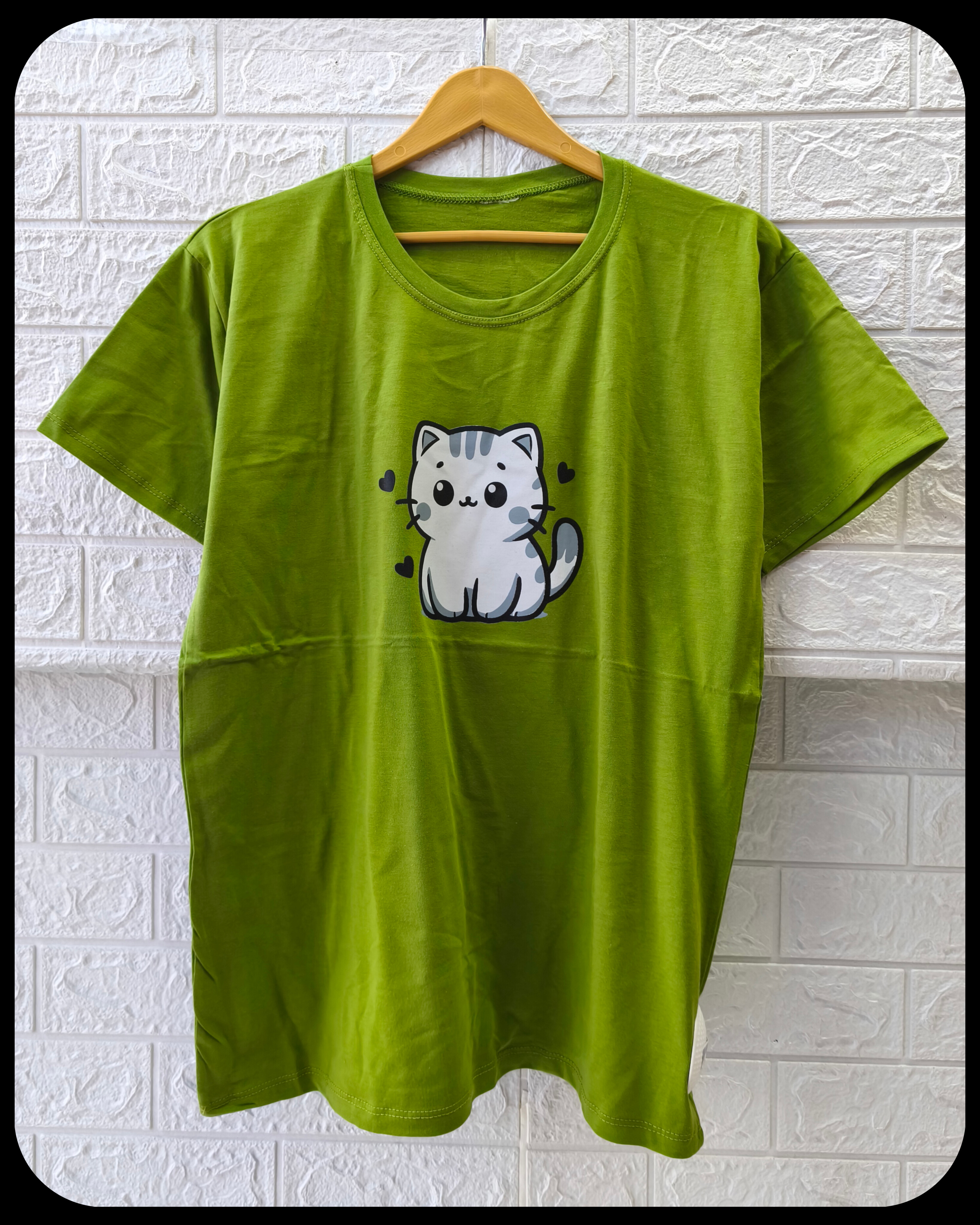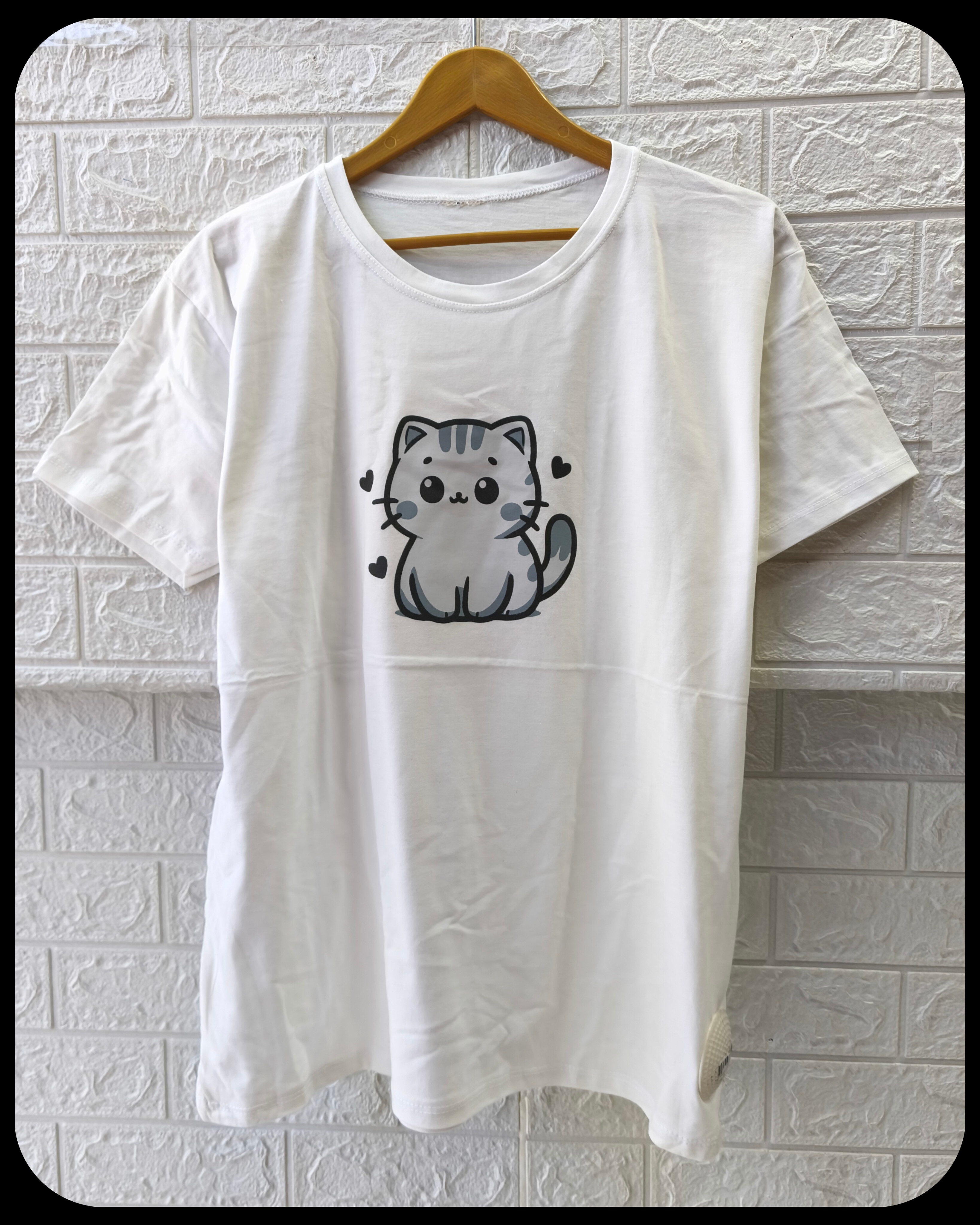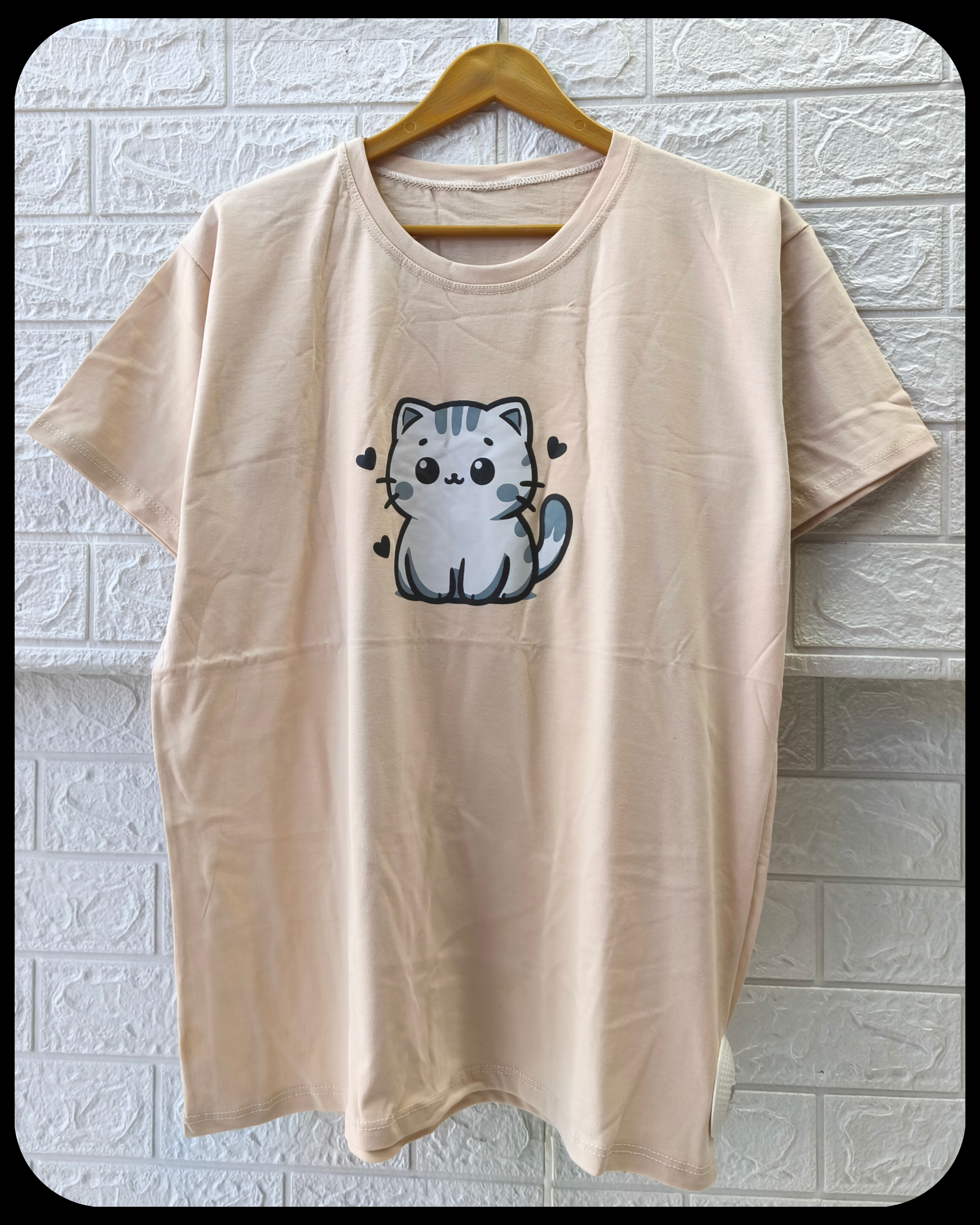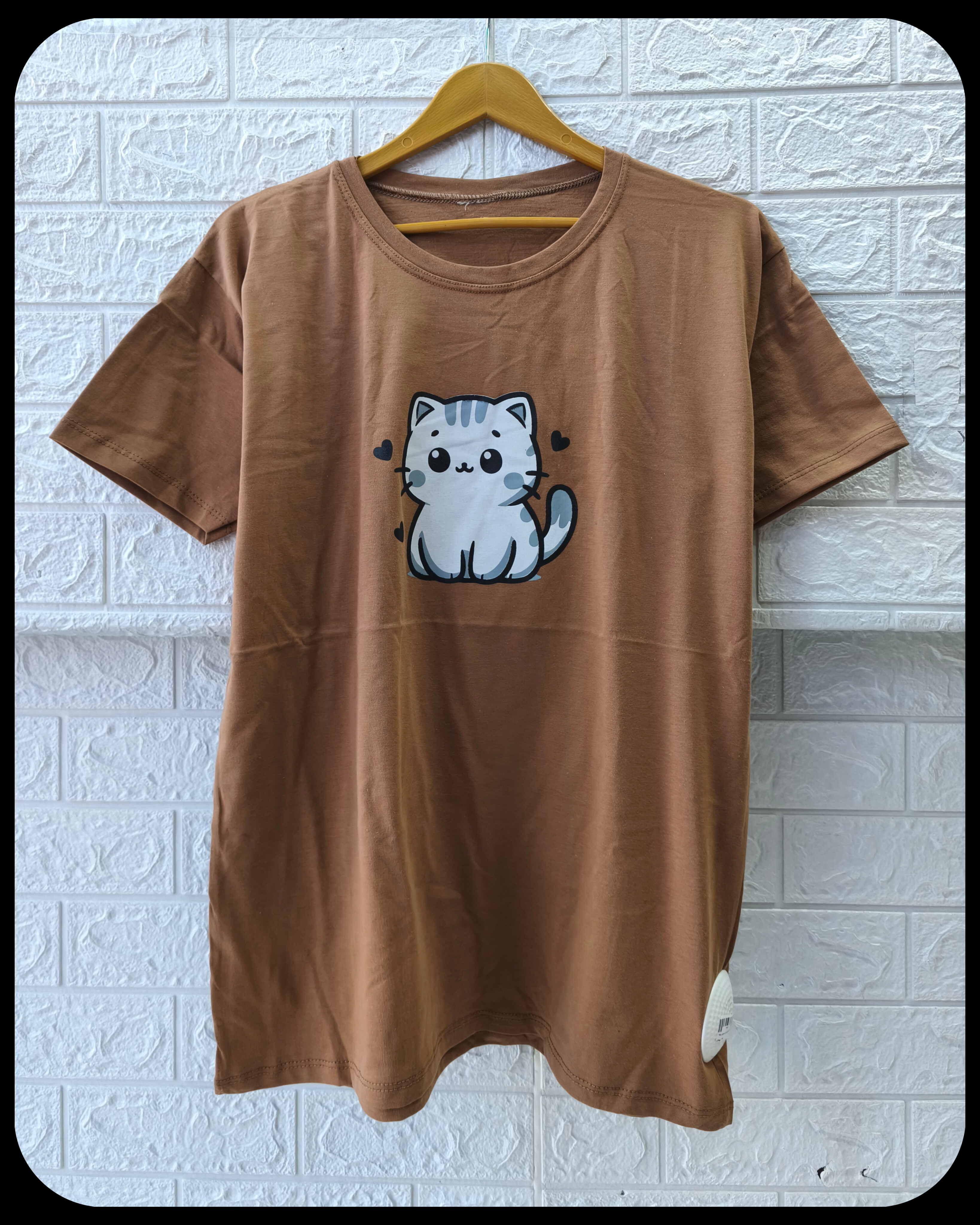 تیشرت زنانه سوپر پنبه قواره نرمال طرح گربه کد 2096
