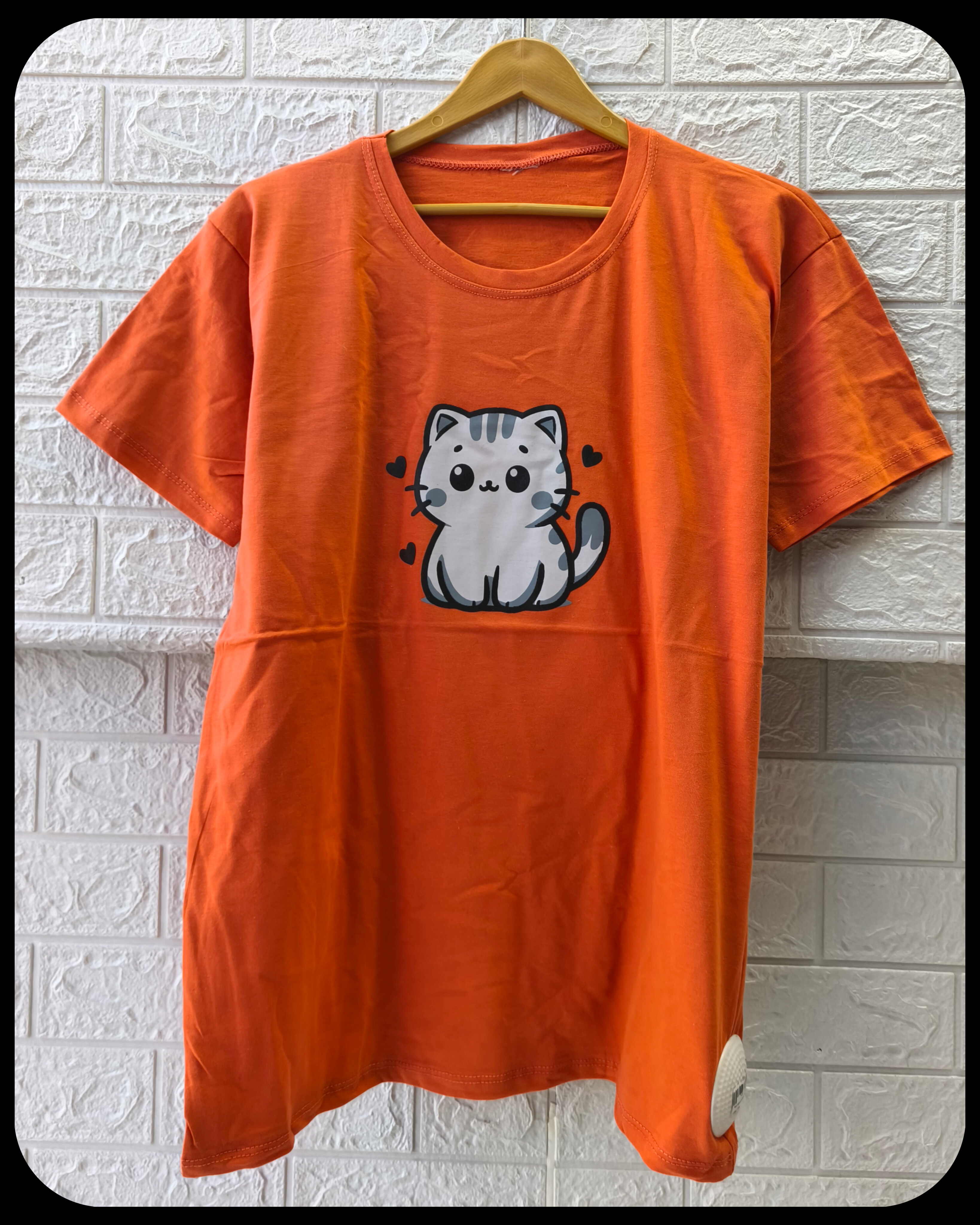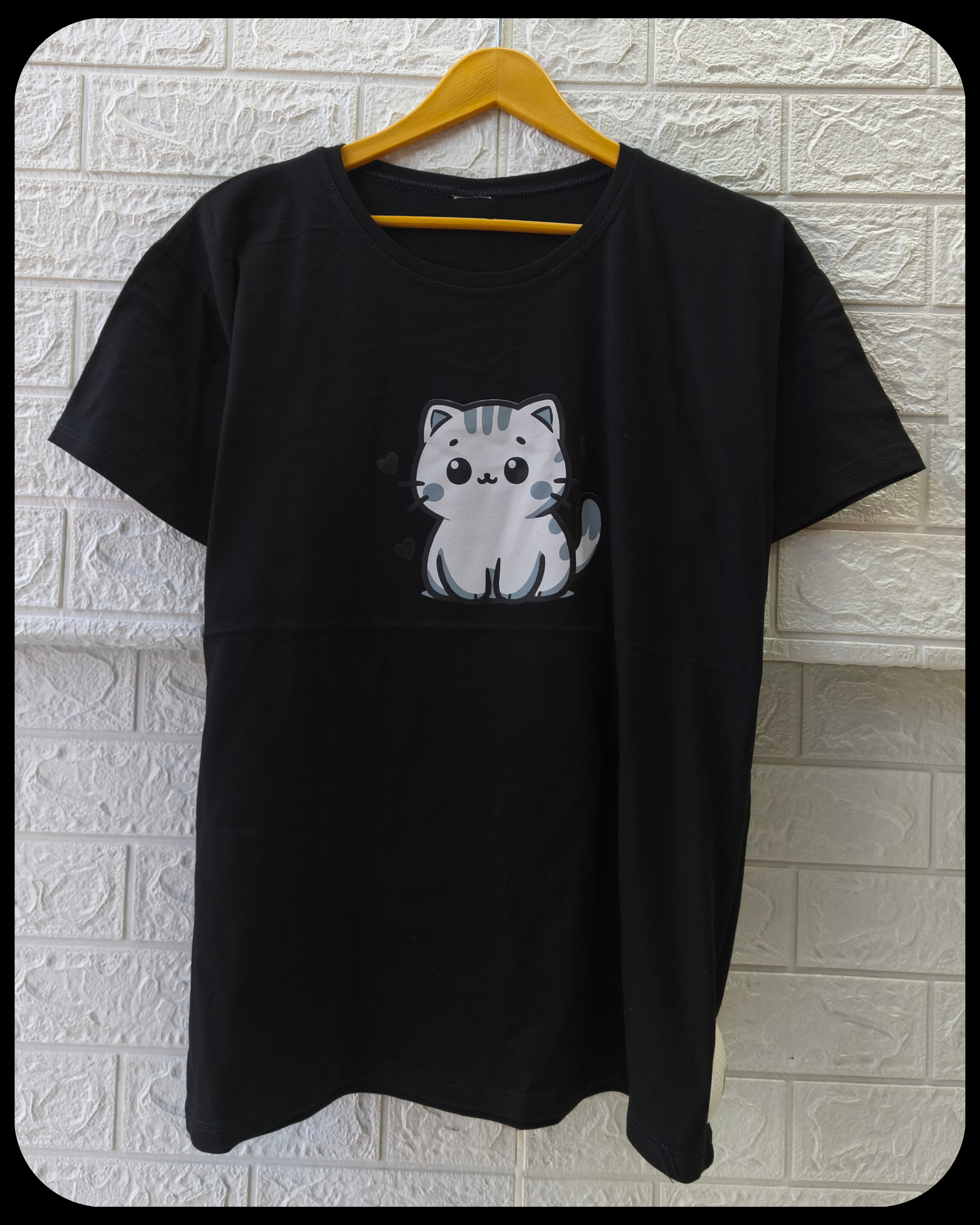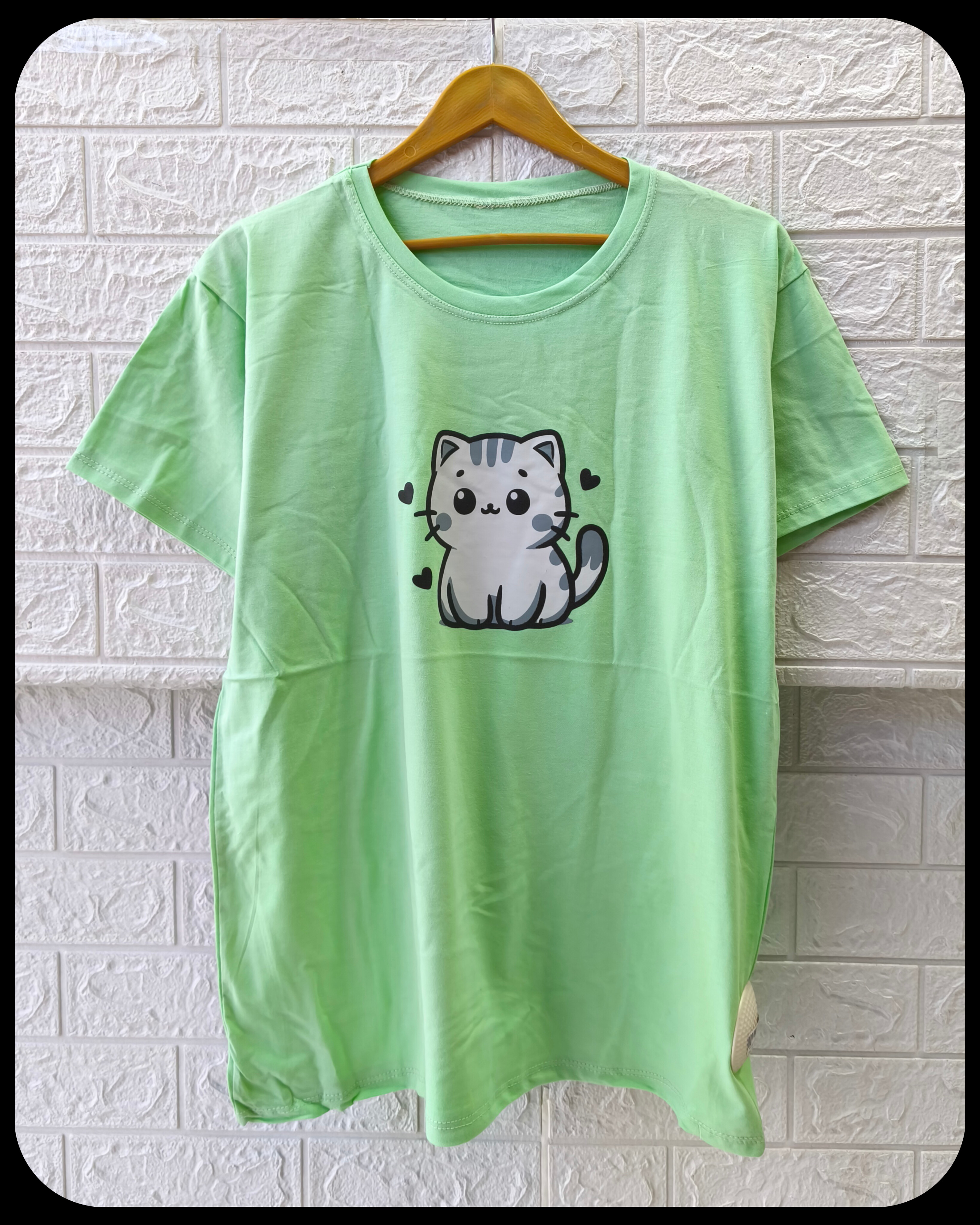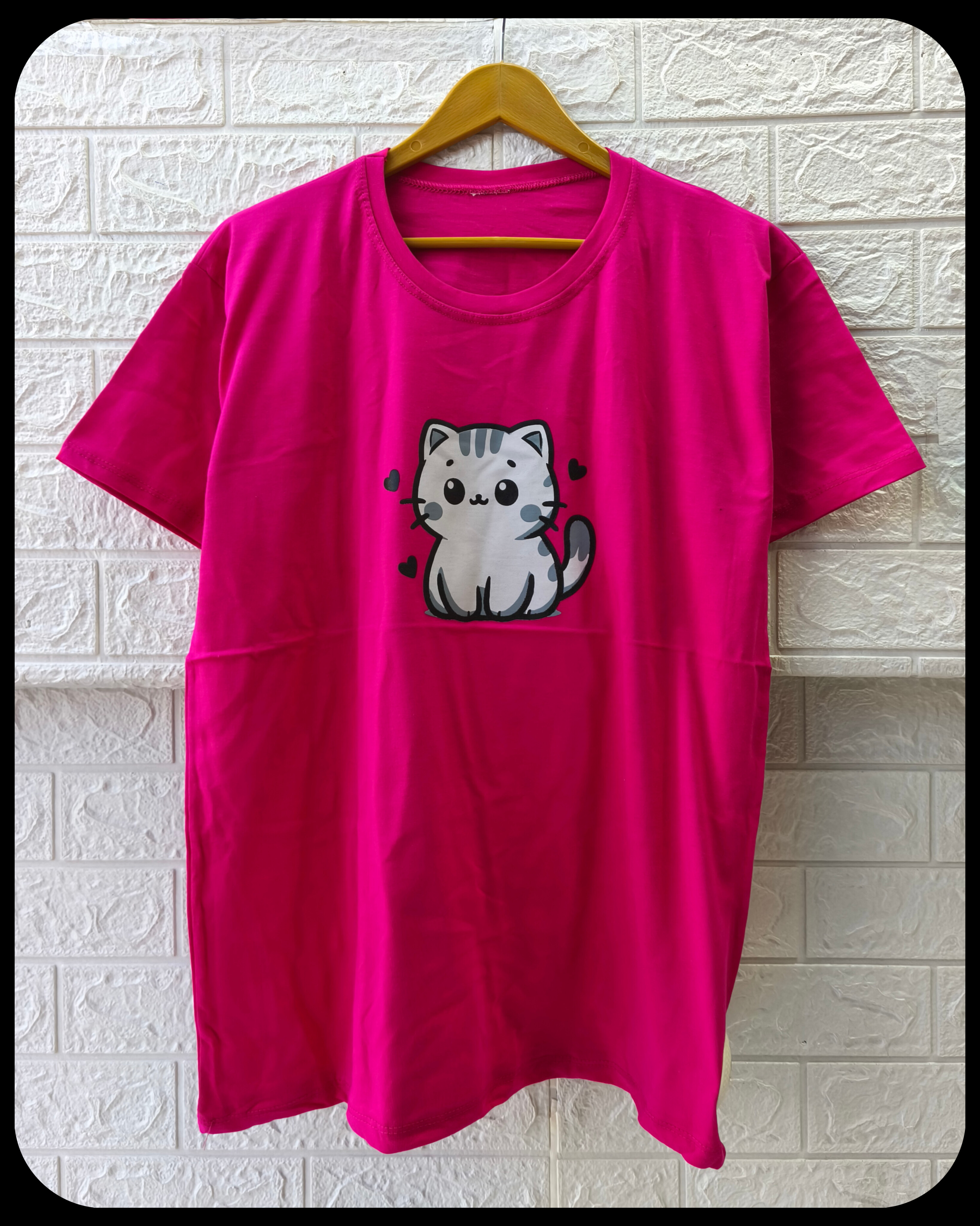 تیشرت زنانه سوپر پنبه قواره نرمال طرح گربه کد 2096