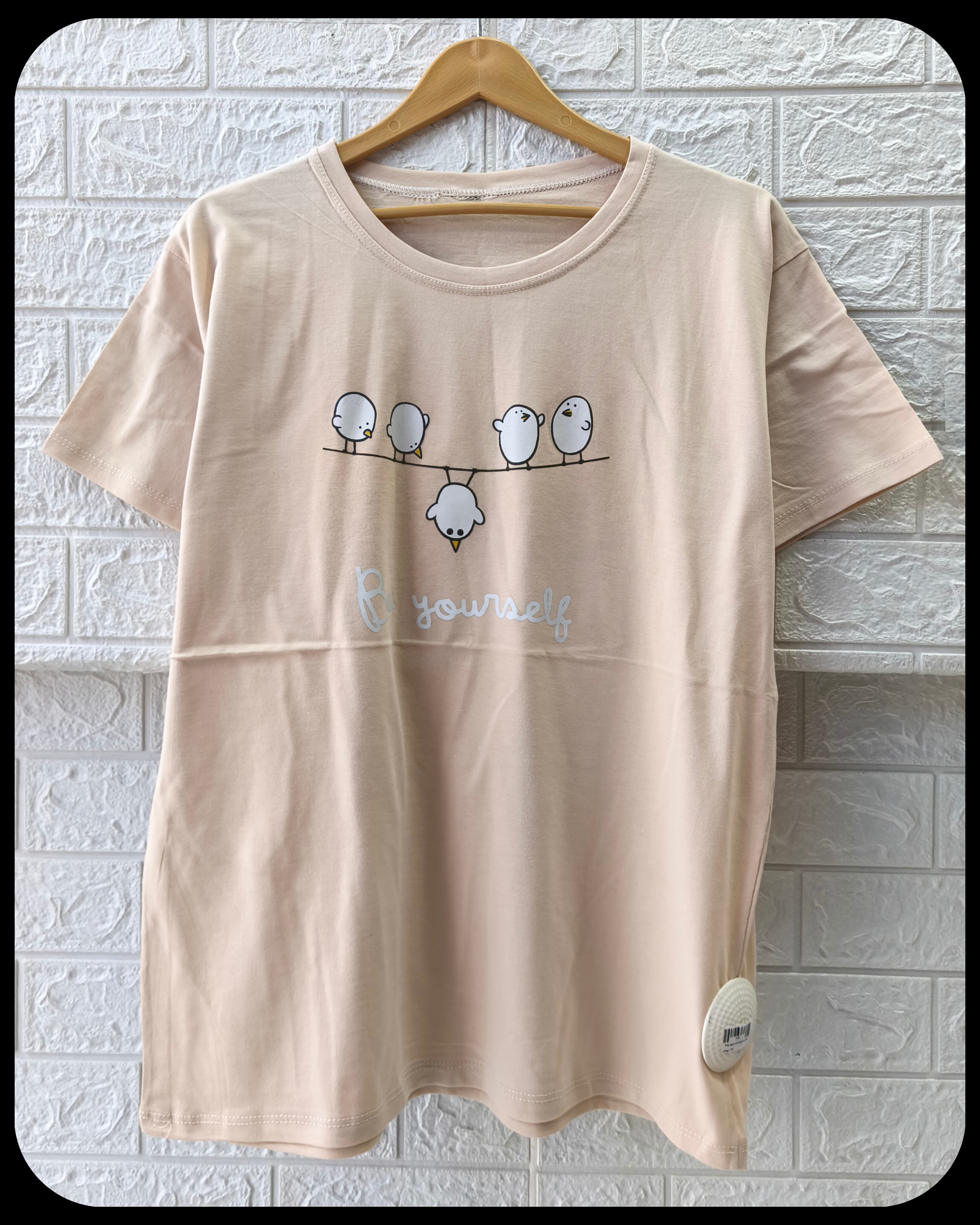 تیشرت زنانه سوپر پنبه قواره نرمال طرح پرنده کد 2096