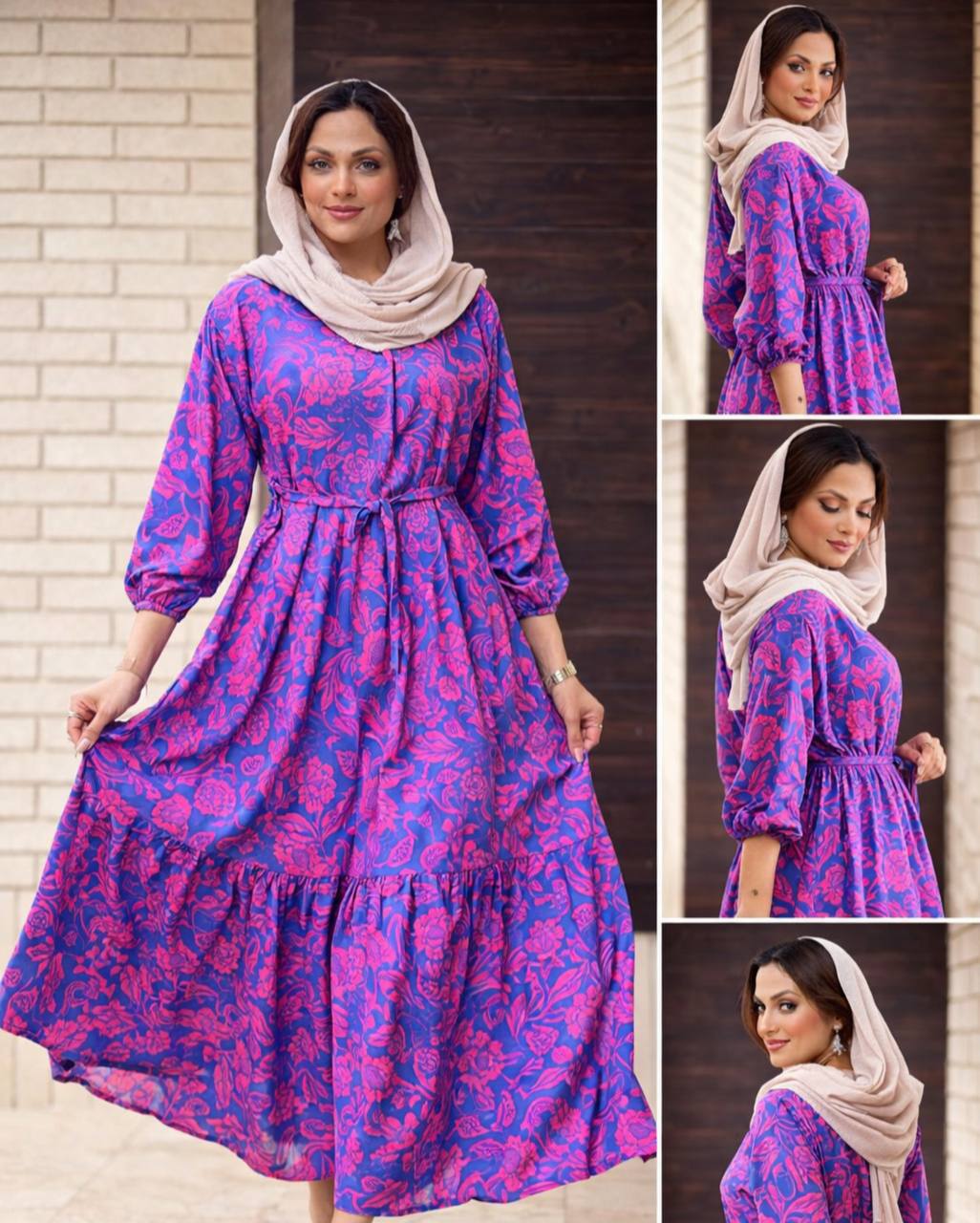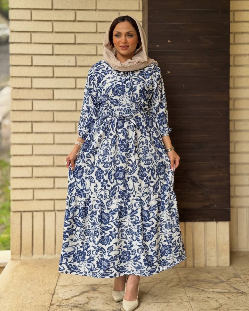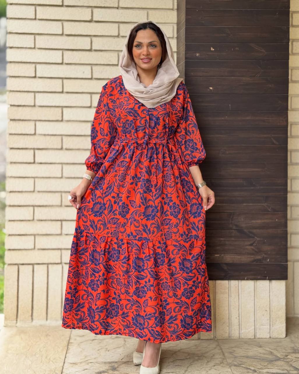 پیراهن ساحلی زنانه پارچه کرپ پفکی بدون آبرفت بدون رنگ رفت ضد چروک قواره راحت دو طرف کمر بندک کار شده برای تنظیم سایز دلخواه