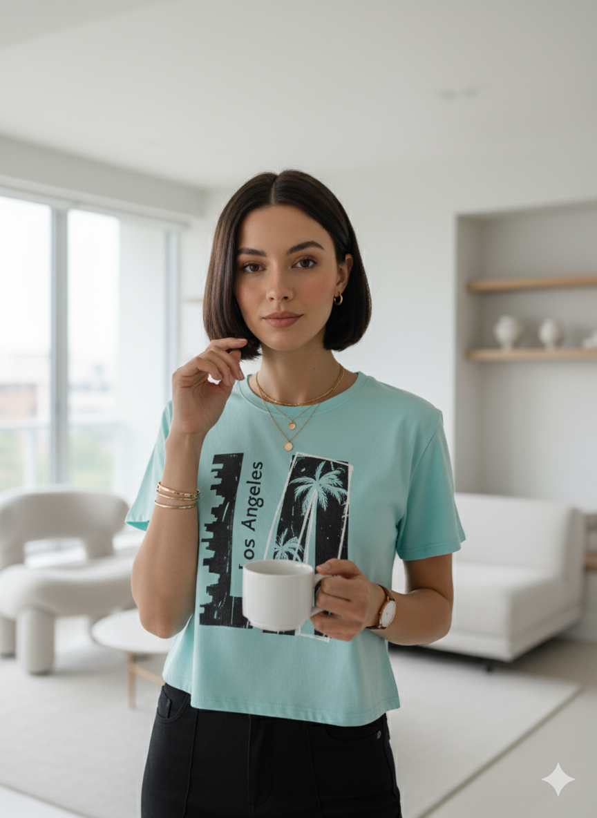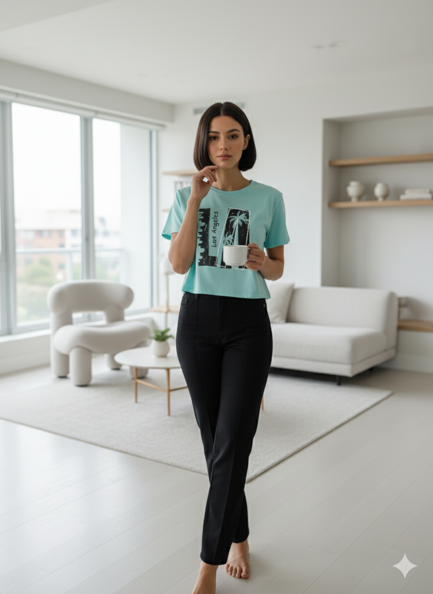کراپ سوپر پنبه زنانه طرح LA کد 3021