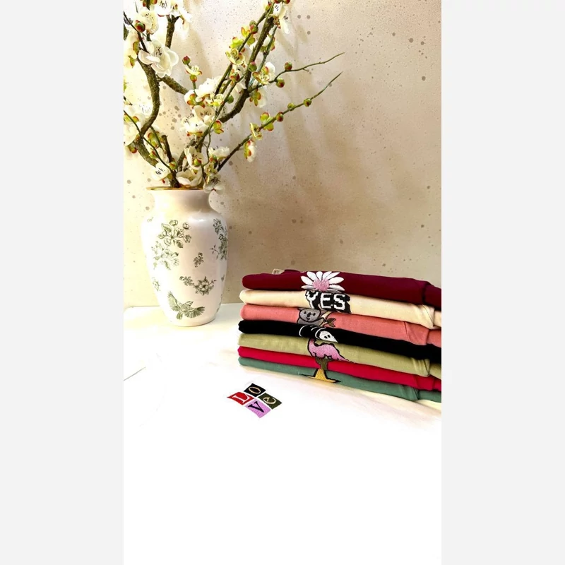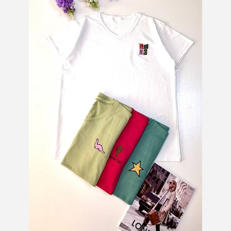 تیشرت زنانه پارچه سوپر پنبه با گلدوزی جذاب