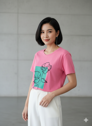 تیشرت زنانه،تیشرت پنبه سوپر با چاپ گل کد 3010