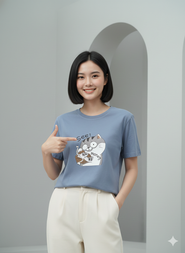تیشرت زنانه پارچه سوپر پنبه طرح گربه کد 2096