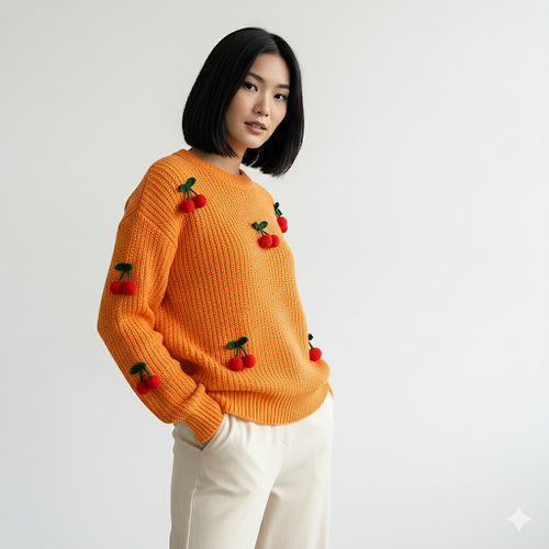 بلوز بافت زنانه طرح گیلاس کد ۴۰۰۱