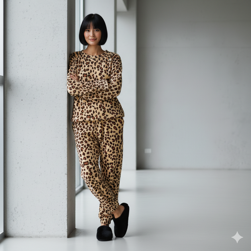 ست بلوز شلوار زنانه تدی حوله ای وارداتی پلنگی کد ۳۰۸۸