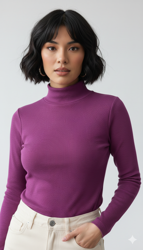 بلوز زنانه مدل یقه اسکی پارچه کبریتی کشباف