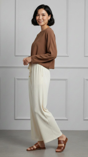 بافت گپ زنانه وارداتی یقه گرد رنگ سوسنی کد 3078