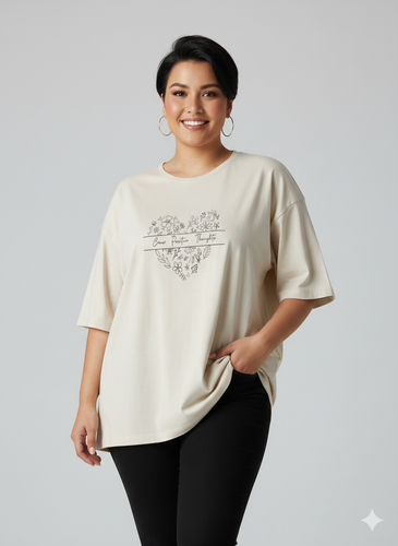 تیشرت سوپر لانگ زنانه طرح قلب کد 3006