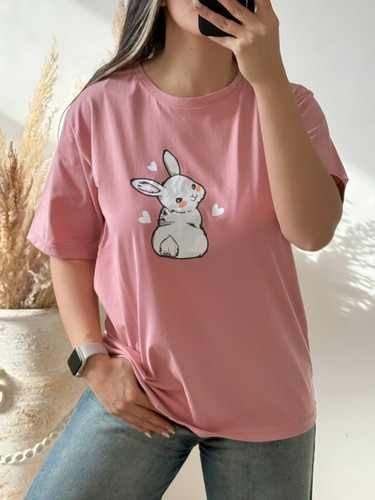 تیشرت زنانه قواره دار باکسی طرح خرگوش ملوس کد ۱۴۹۰