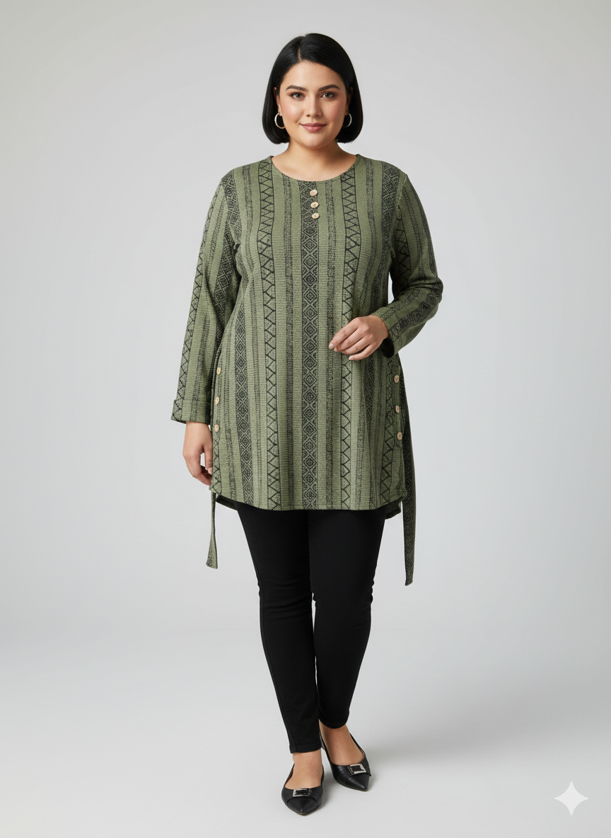 تونیک زنانه آستین بلند پارچه نخ پنبه وارداتی محصول اروپایی کد 2059